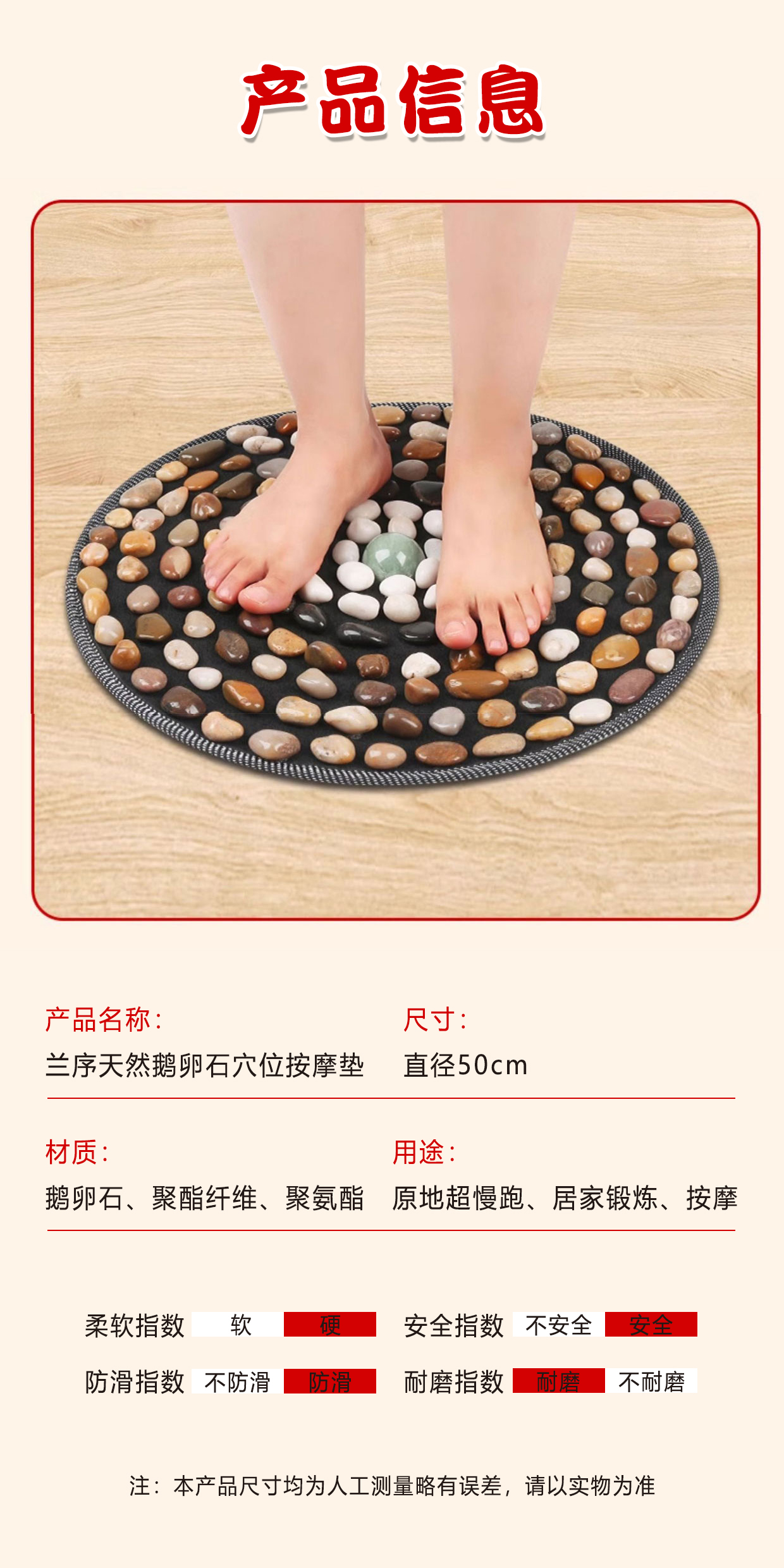严选 | 兰序兰序·鹅卵石穴位按摩垫 直径50cm 舒筋活络(赠拖鞋+鹅卵石+免钉胶+穴位图)