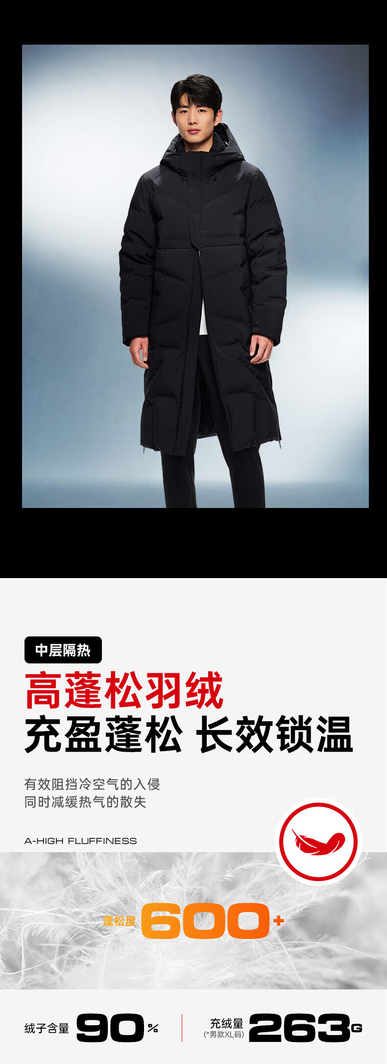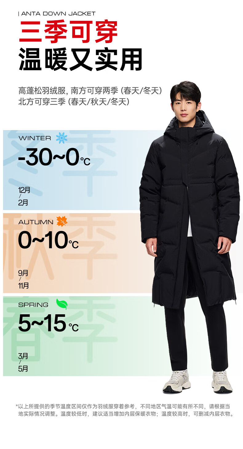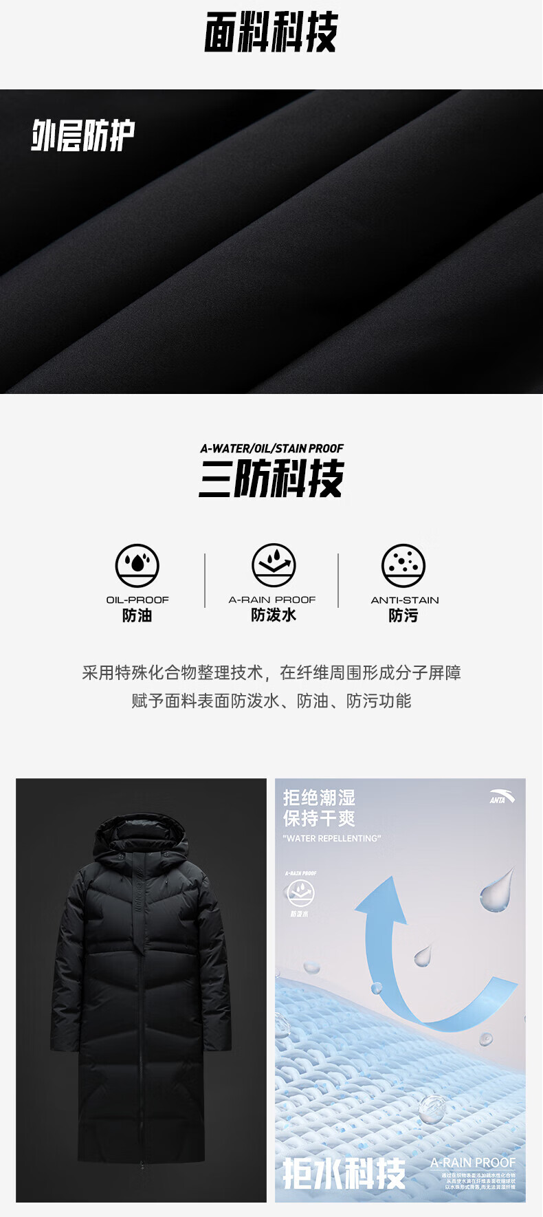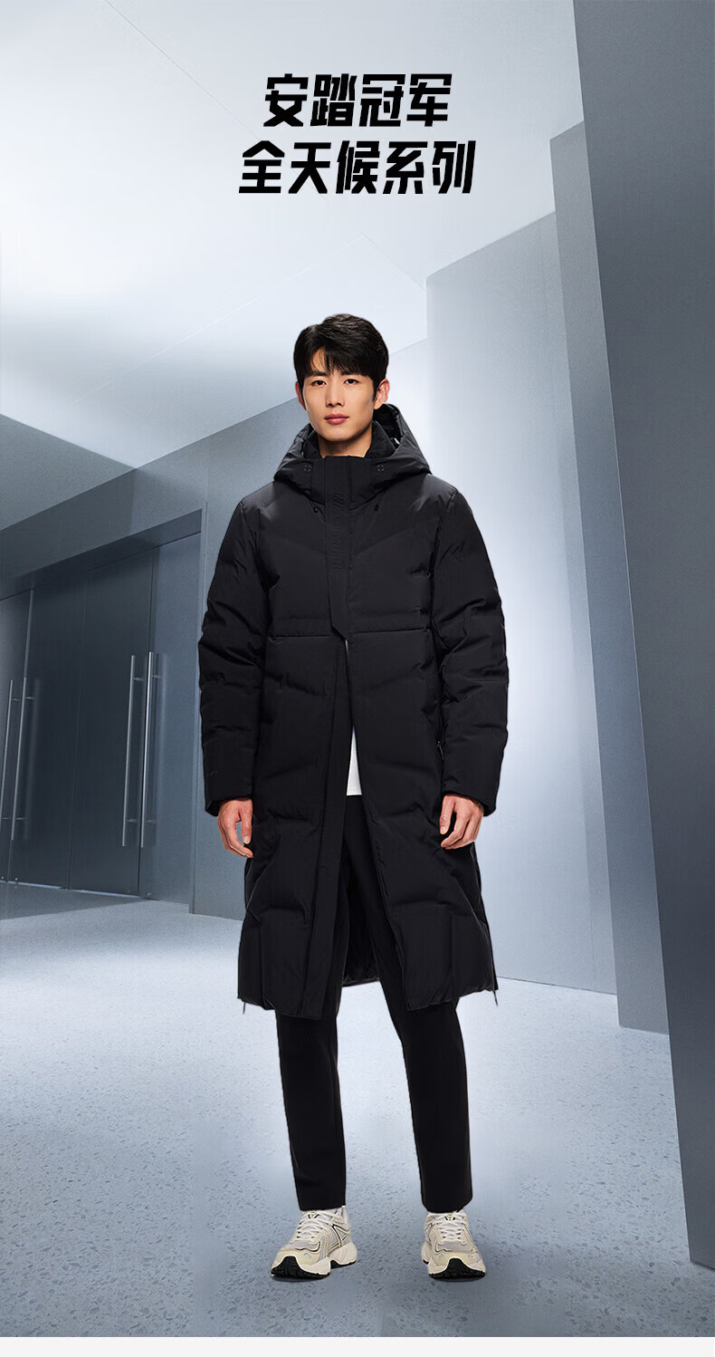 安踏【武大靖同款】冠军全天候长款羽绒服大白保暖鹅绒外套152510921