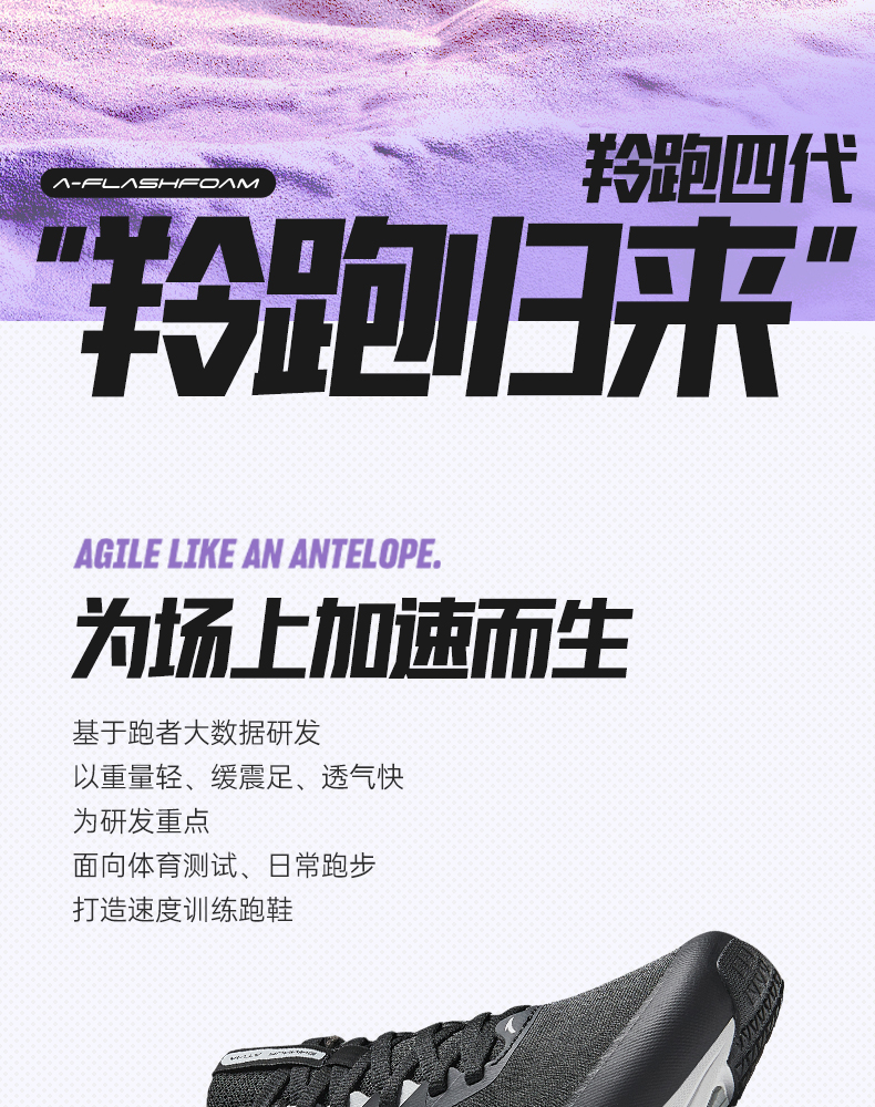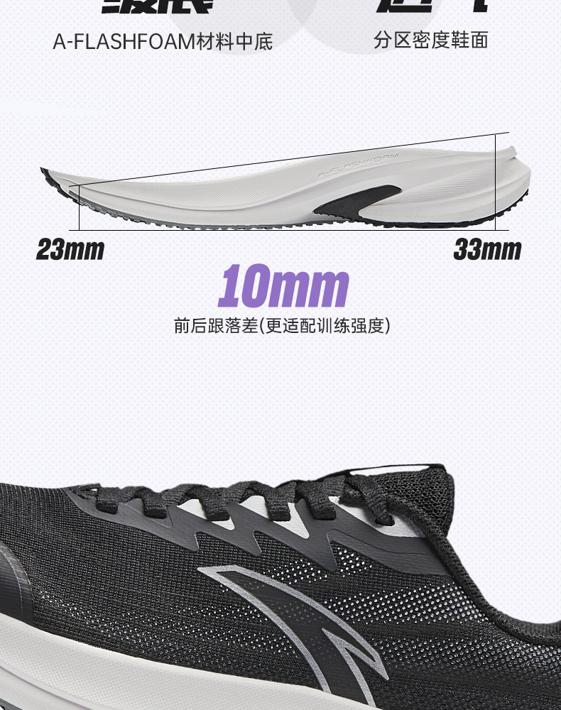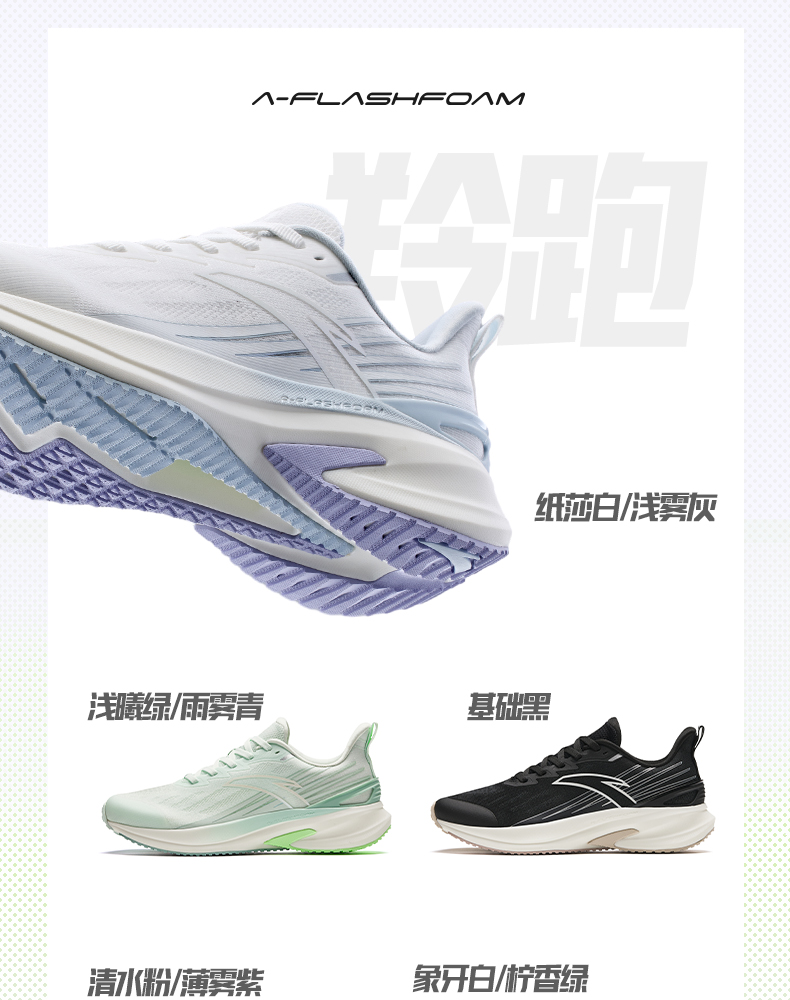 安踏羚跑 透气体测缓震跑步鞋女2025秋厚底软底运动鞋122535585R