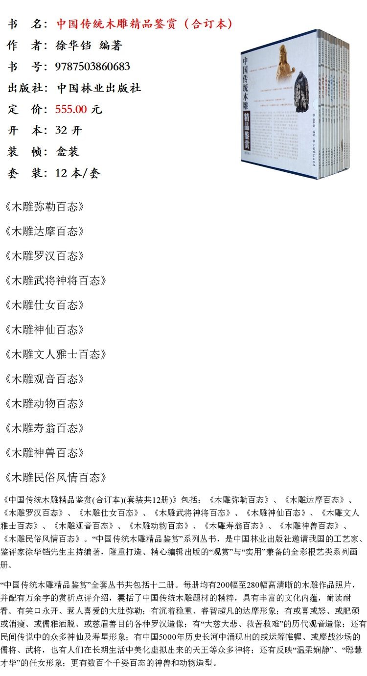 中国传统木雕精品鉴赏 合订本 6068 徐华铛 弥勒达摩罗汉仕女武将神将神仙文人雅士观音动物寿翁神兽民俗风情百态 中国林业出版社