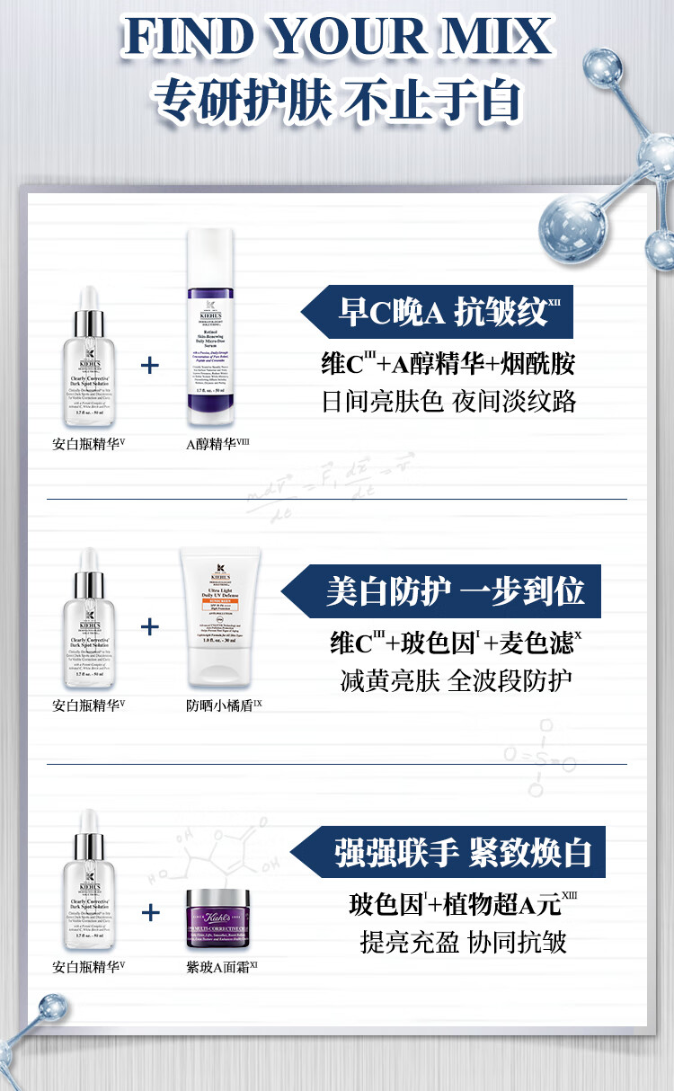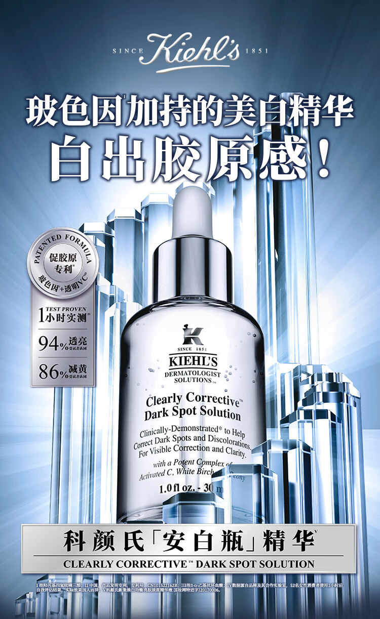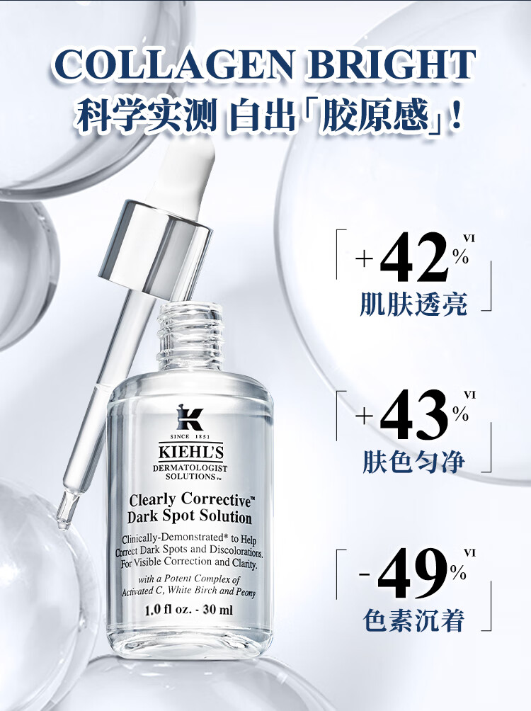 【精选包邮】正品科颜氏(Kiehl's)淡斑精华液30ml 安白瓶美白祛斑淡痘印 心选到家