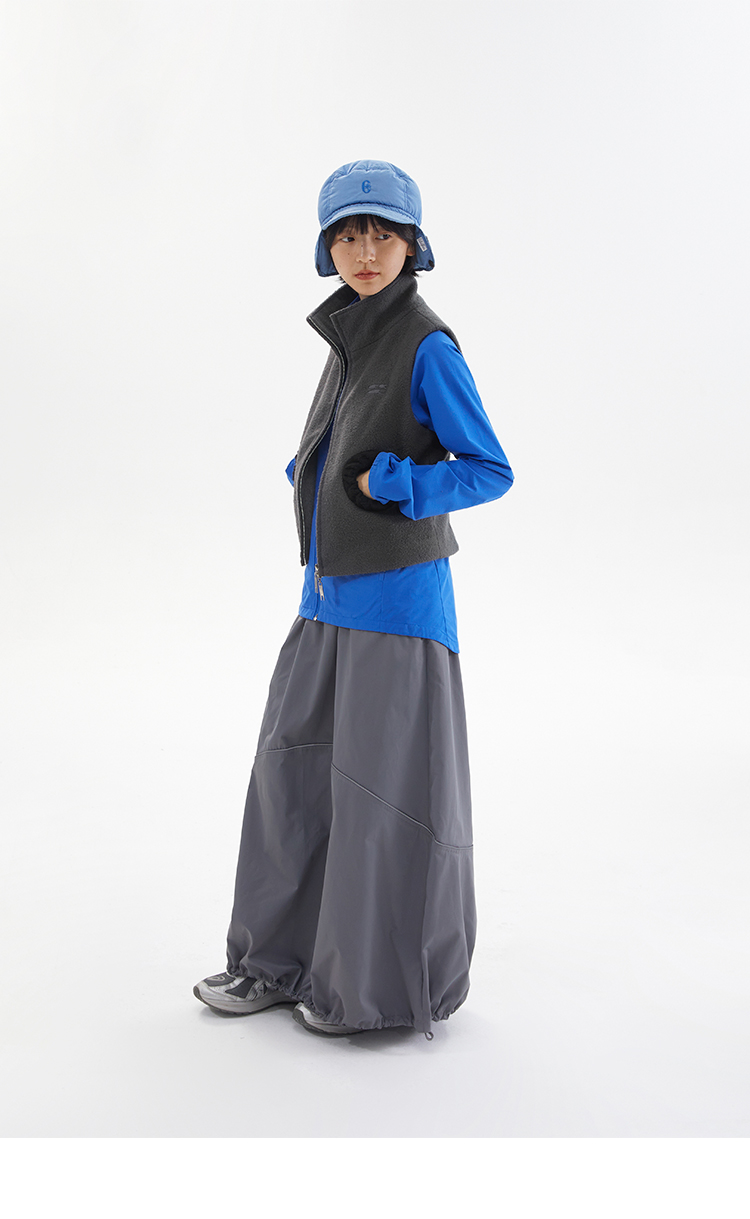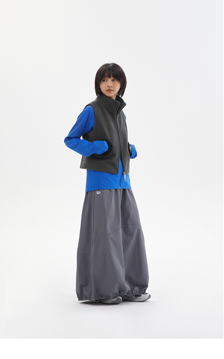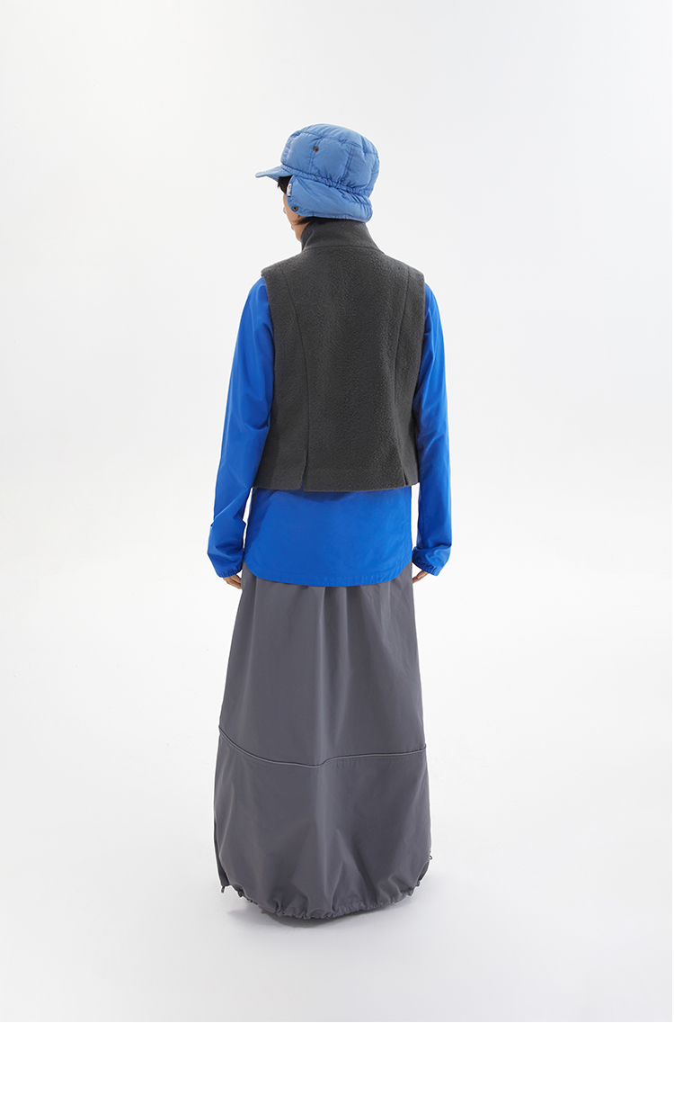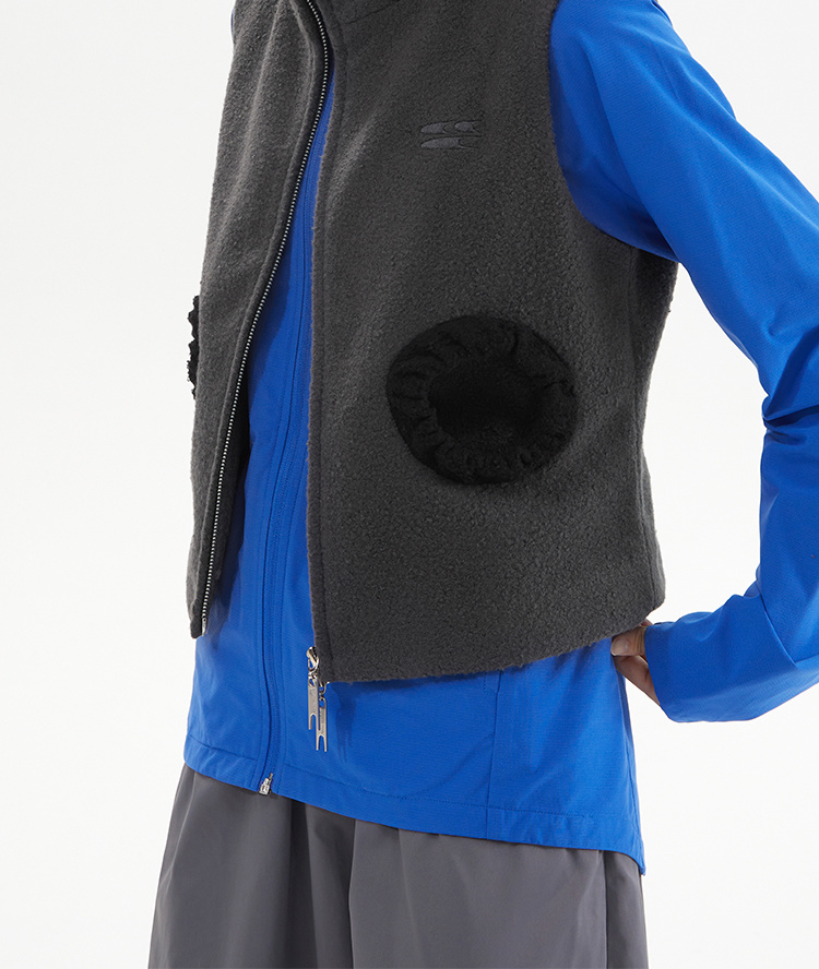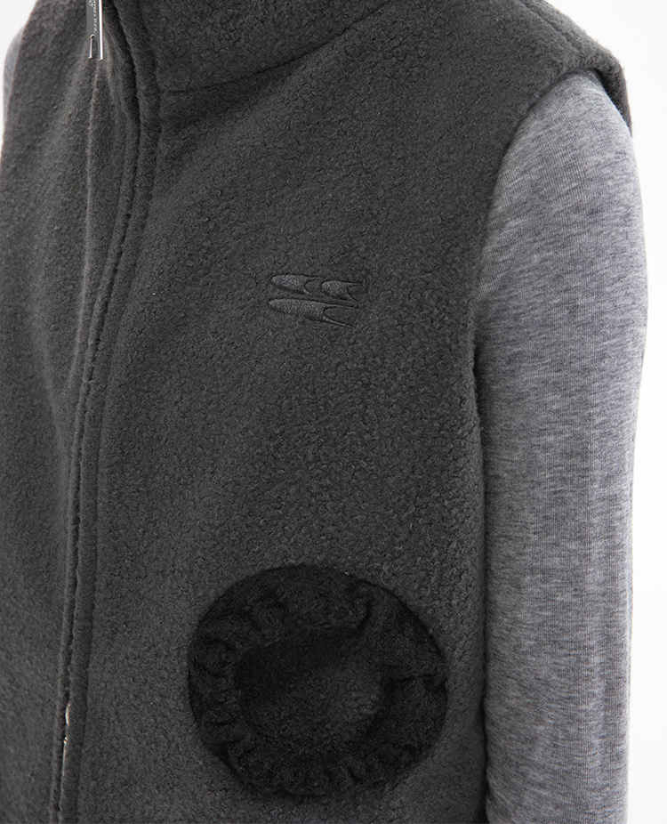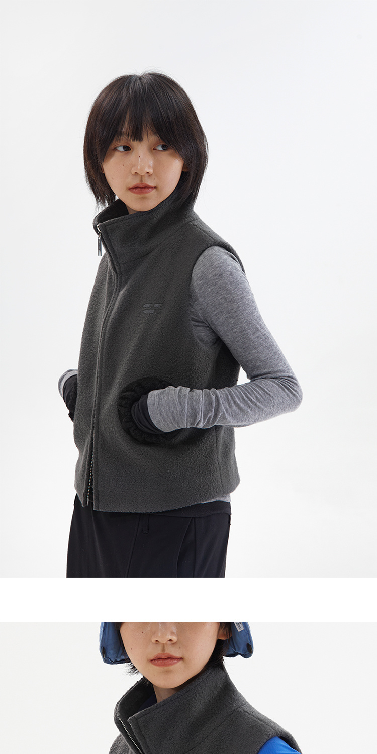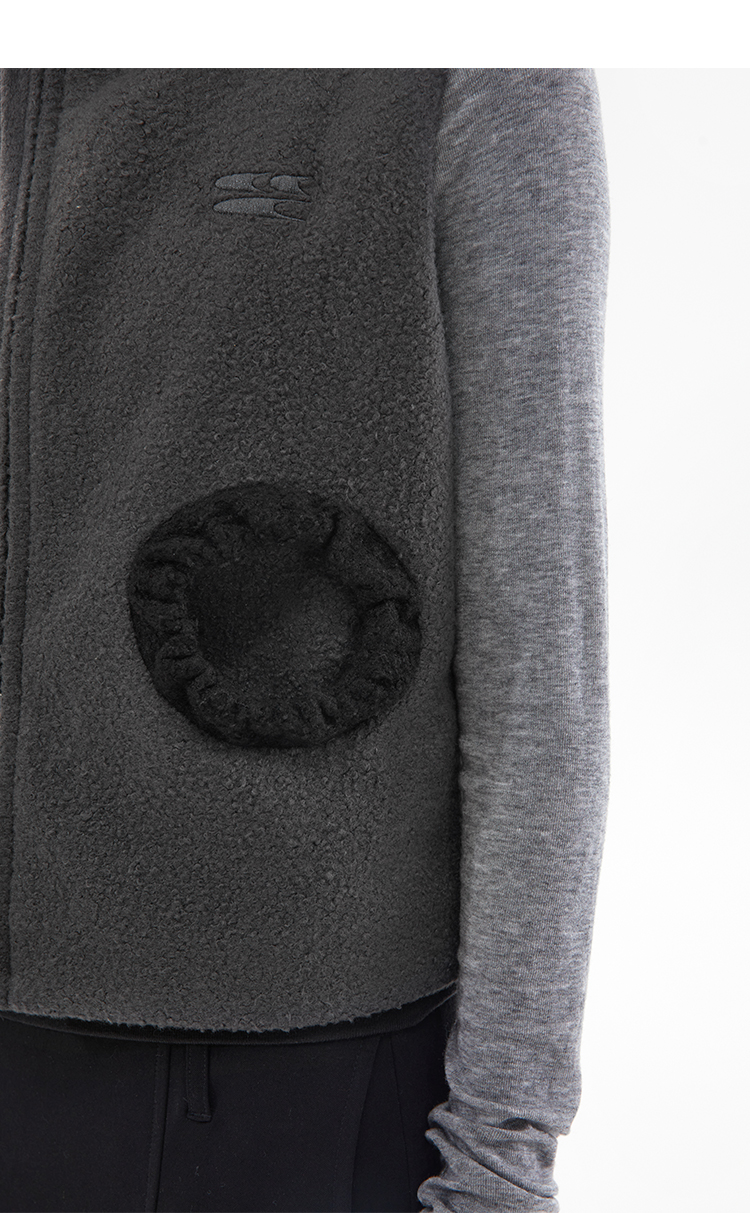 灰黑拼色羊毛圈圈口袋双拉链修身短马甲