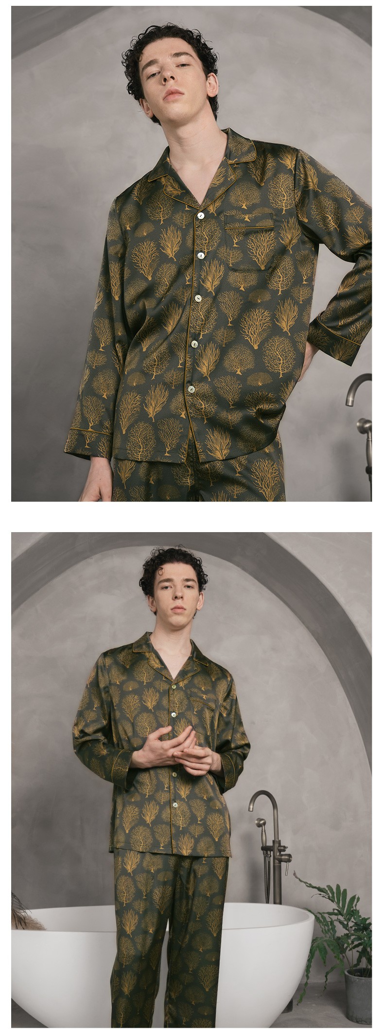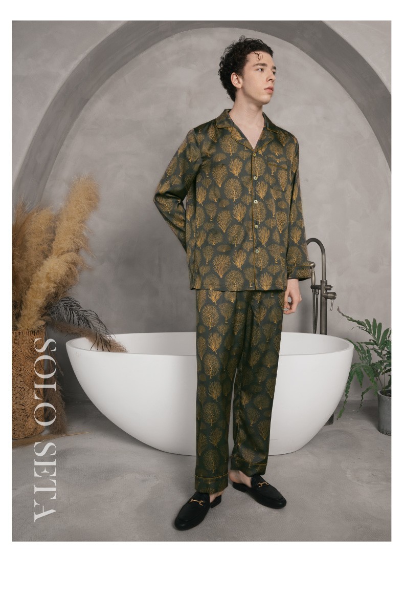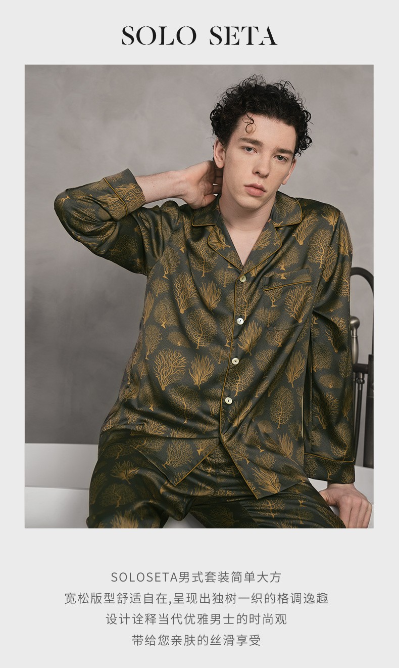 Solo seta22姆米重磅真丝睡衣套装长袖桑蚕丝家居服男奢华丝绸秋冬