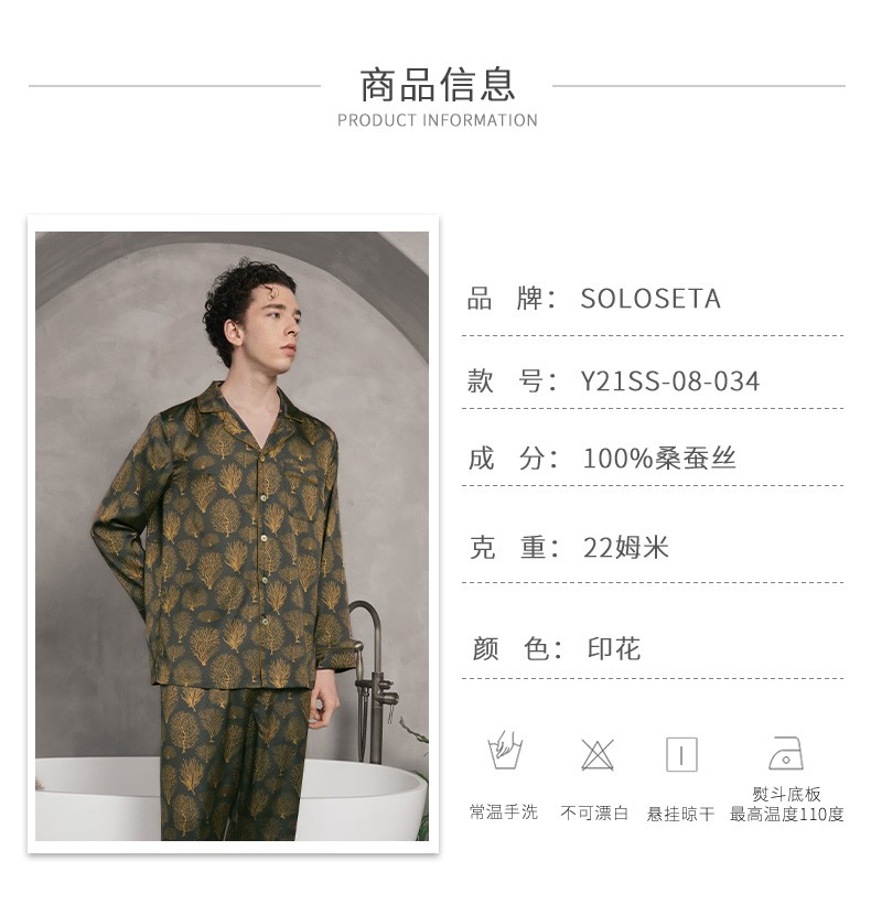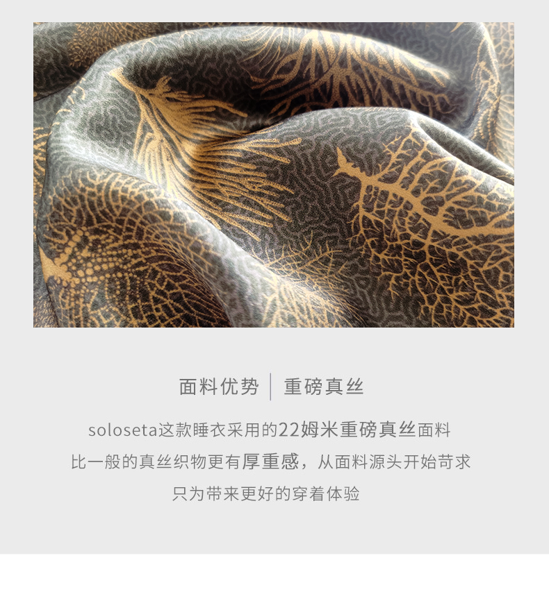 - soloseta专注于真丝织物,灵感源自意大利语,中文含义为“只做真丝”的意思。让睡衣变时尚,居家和外出瞬间切换,使其更具有出街,度假,参加宴会等功能。