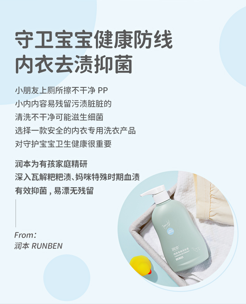优选丨润本儿童内裤洗衣液婴儿洗衣液500ml新生宝宝专用婴幼儿内衣清洗液除菌