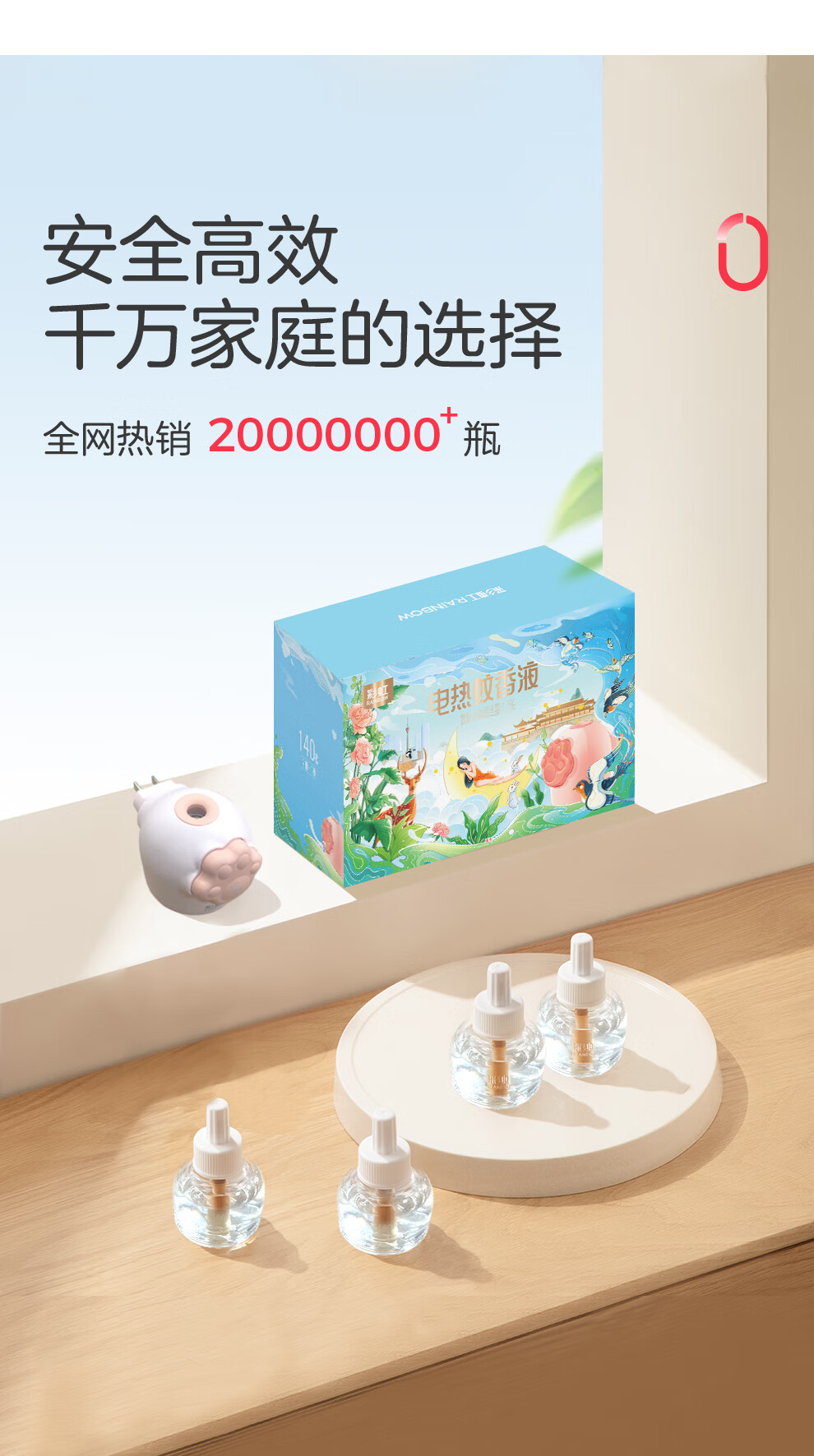 彩虹 电蚊香 蚊香液直插器超值装(2+1)无味 T5121【24款】