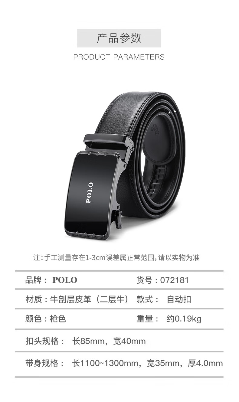 POLO 男士皮带 自动扣牛皮休闲腰带072181