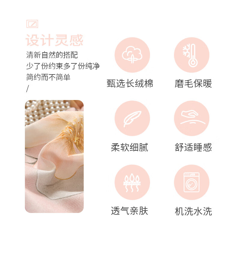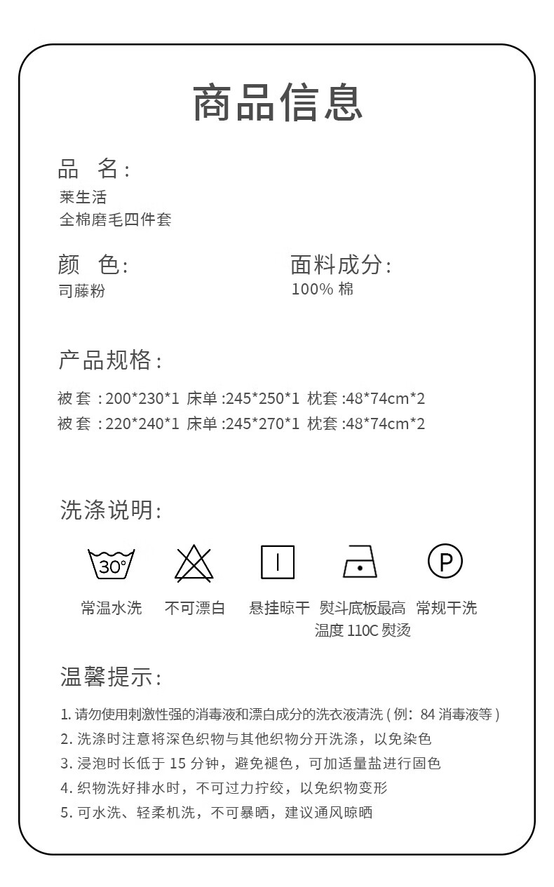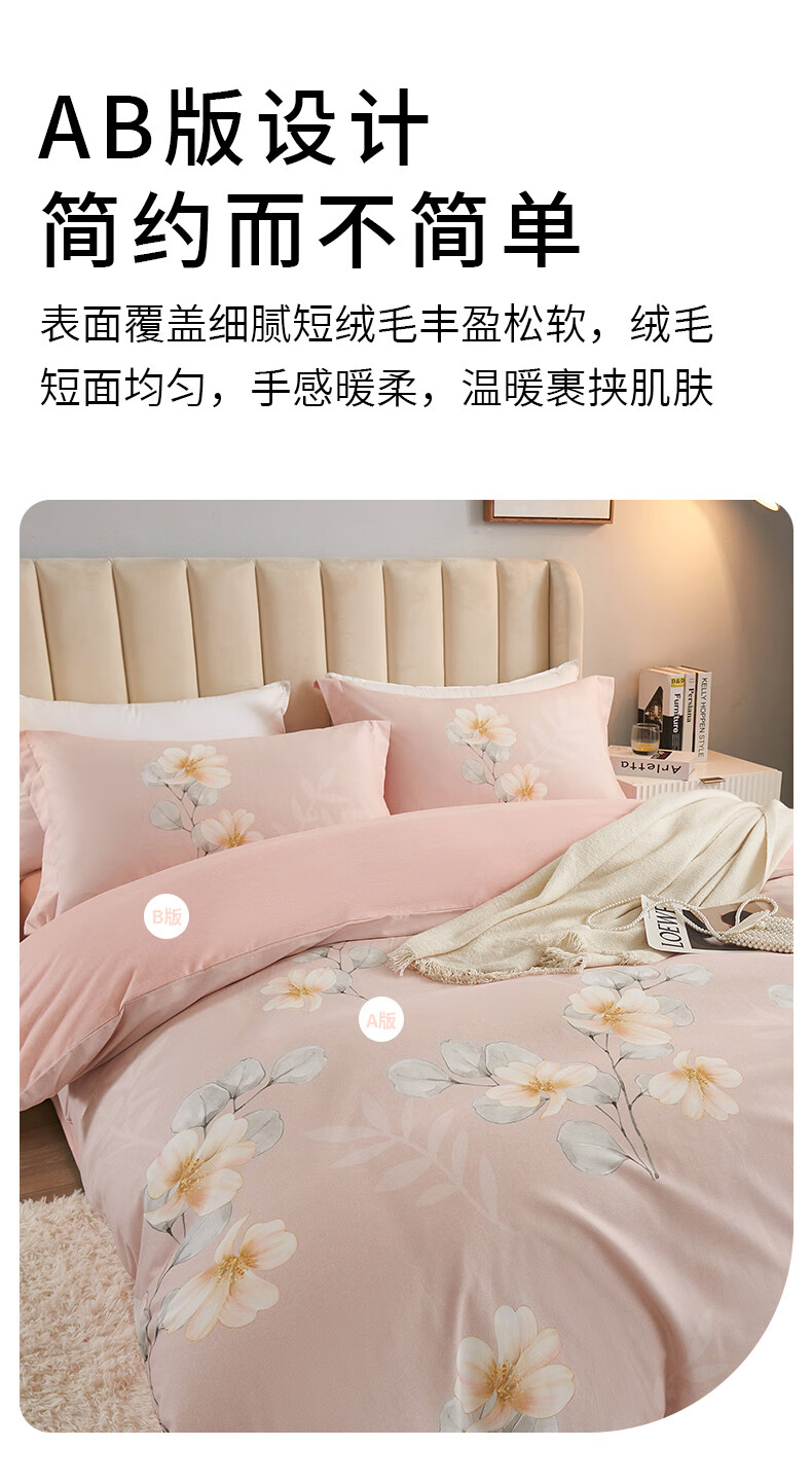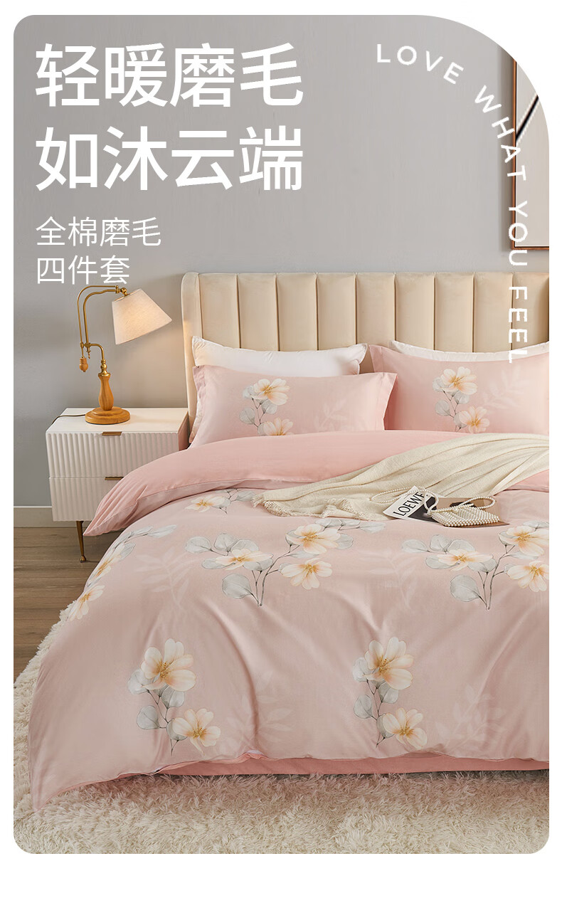 莱生活 全棉磨毛四件套-司藤粉 200*230cm