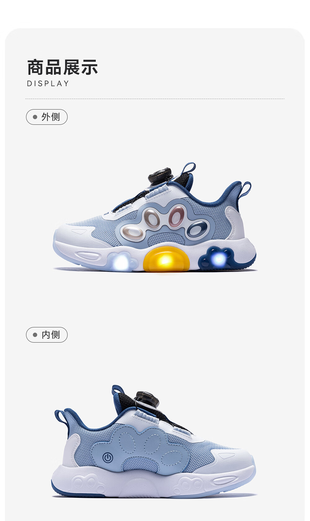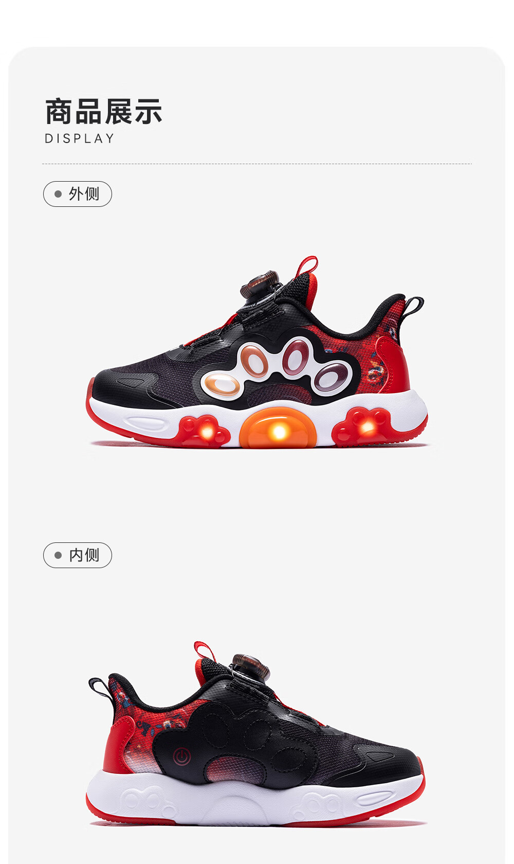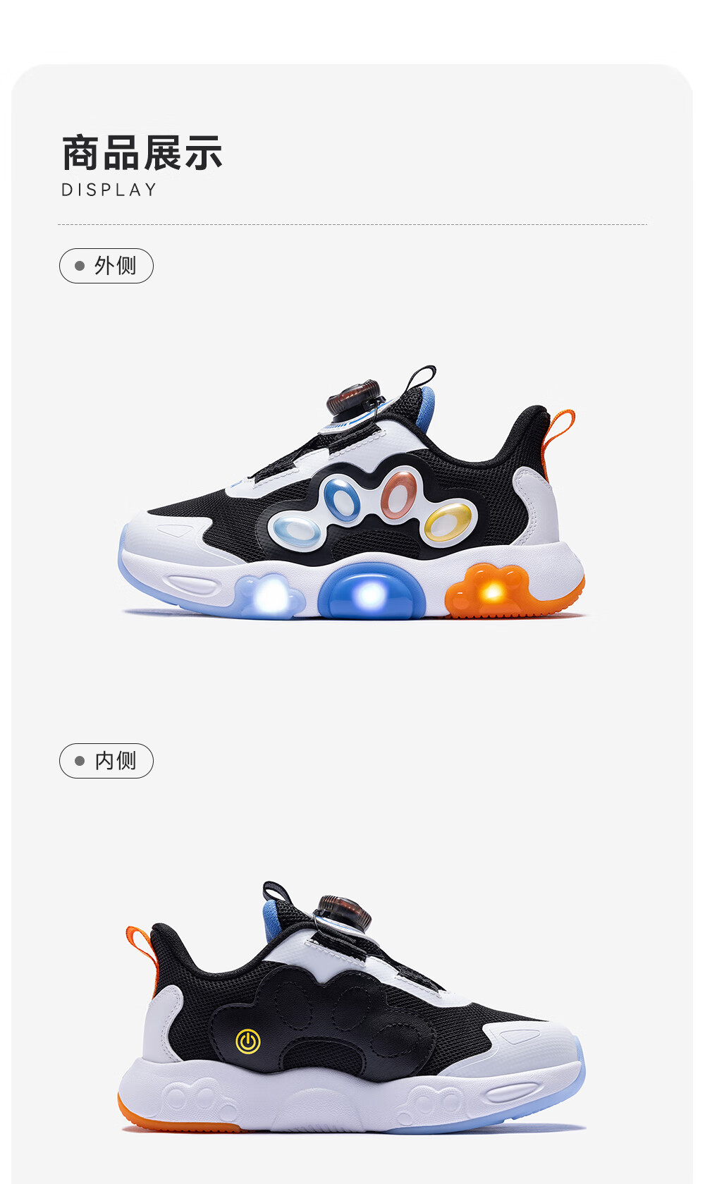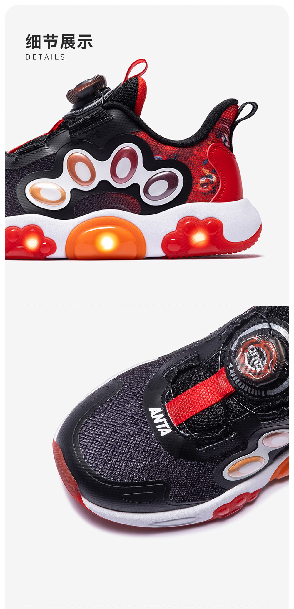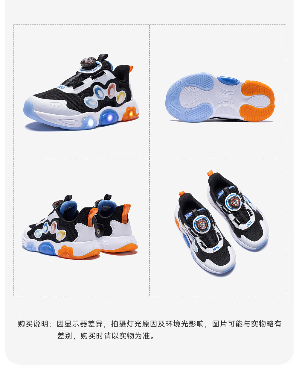 安踏儿童运动鞋男小童萌爪秋冬季新品闪灯旋钮扣休闲鞋子312619921