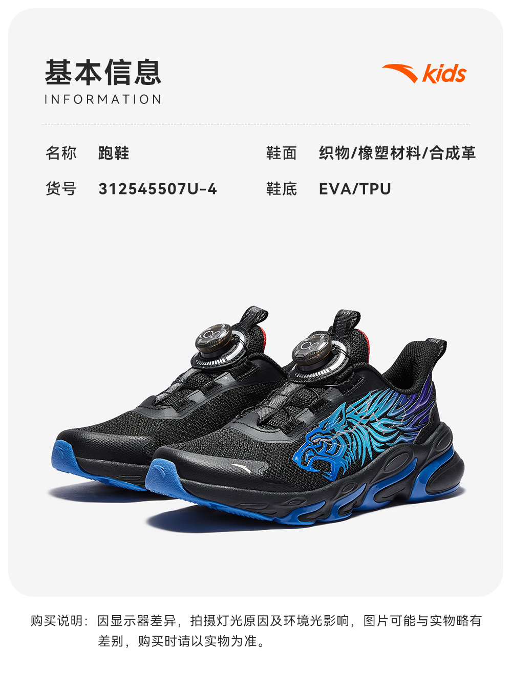 超级安踏儿童缓震跑鞋秋冬运动鞋学生体测鞋子训练鞋312545507U