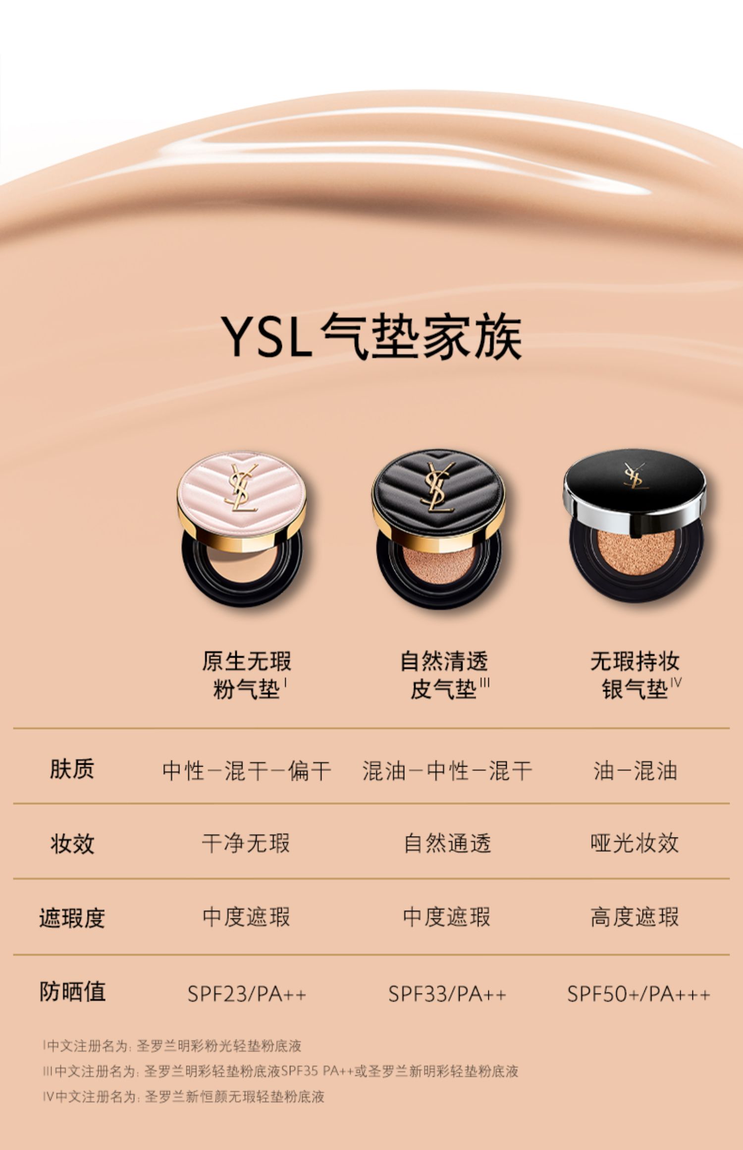 法国YSL圣罗兰 明彩粉光轻垫粉底液SPF23/PA++(粉气垫)12g B10白皙肤色