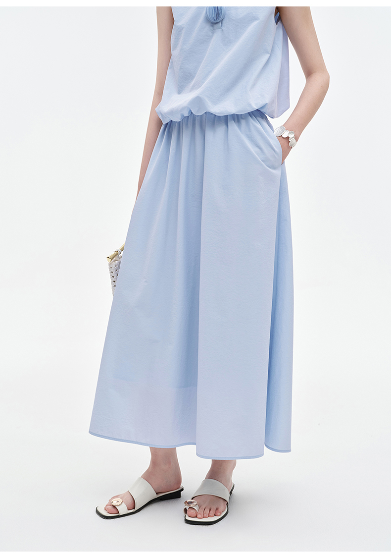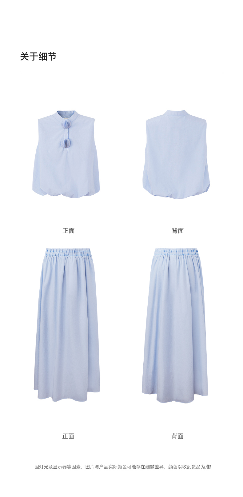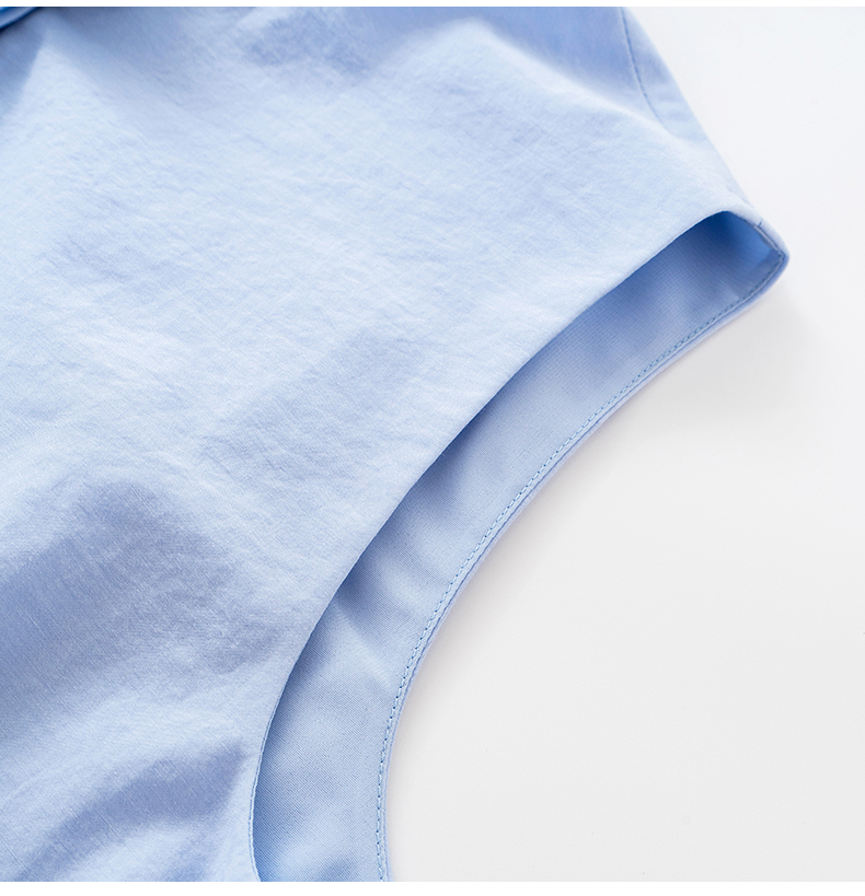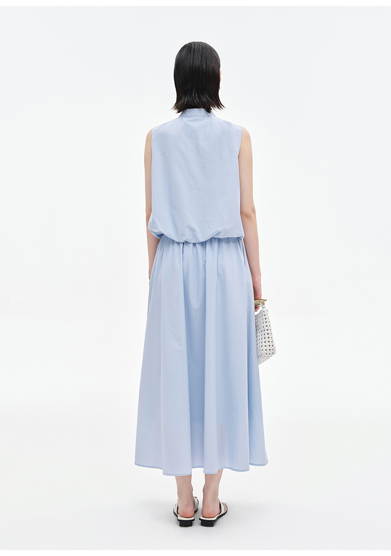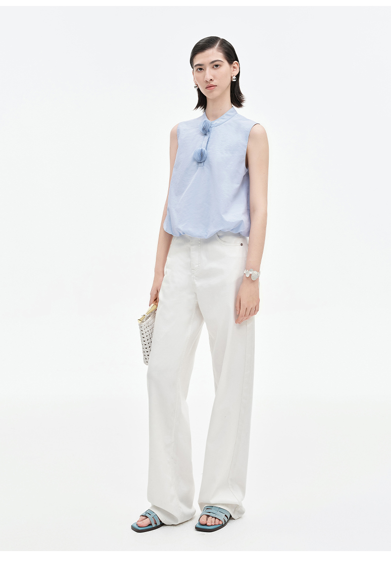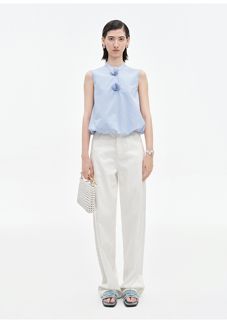 [乔欣同款]SELFWHO蓝色棉混纺立领无袖花苞背心女夏新款短款马甲