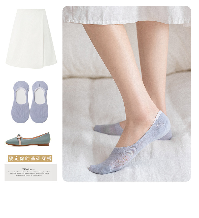 【8双超值装】酷艾妮网眼镂空隐形袜 镂空浅口设计轻薄凉爽 弹力袜口 硅胶防掉跟 淡雅色系经典百搭 均码