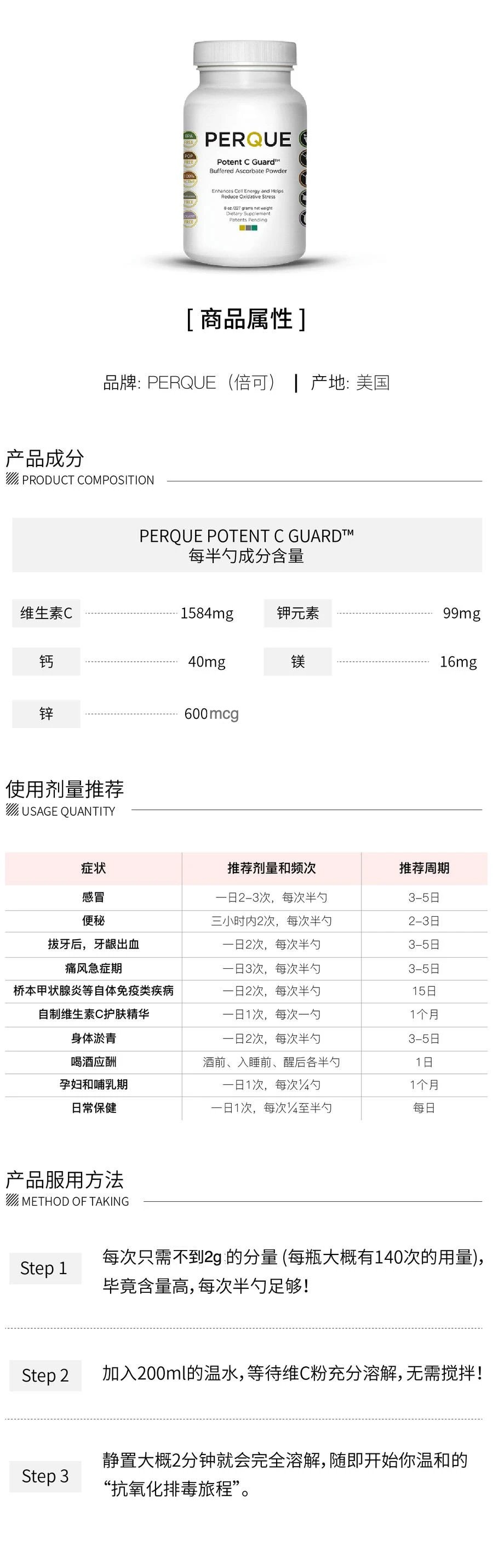 【高品质纯碱化维C粉】Perque C Guard 超高纯碱化VC粉末 不刺激肠胃 十秒速溶 矿物质螯合 不反酸高溶解