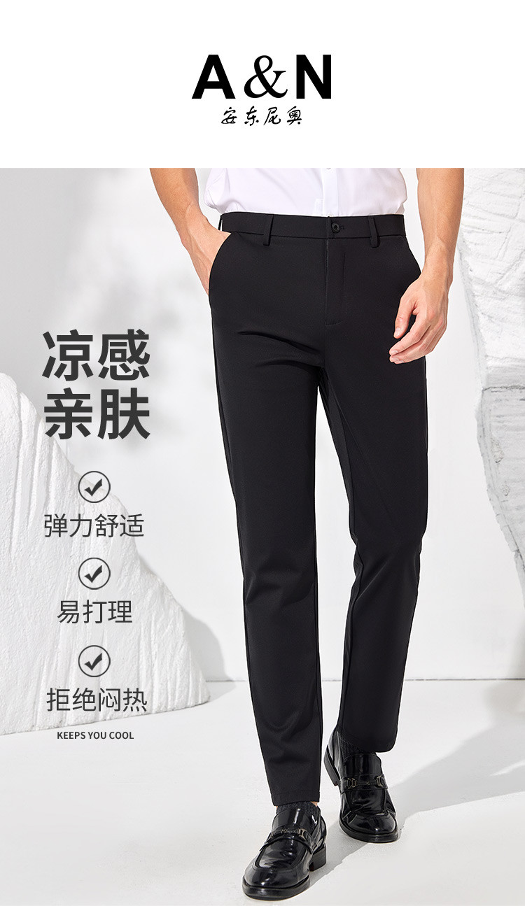安东尼奥A&N 【凉感亲肤&四面弹力】夏季百搭纯色垂顺易打理商务休闲裤男5774725