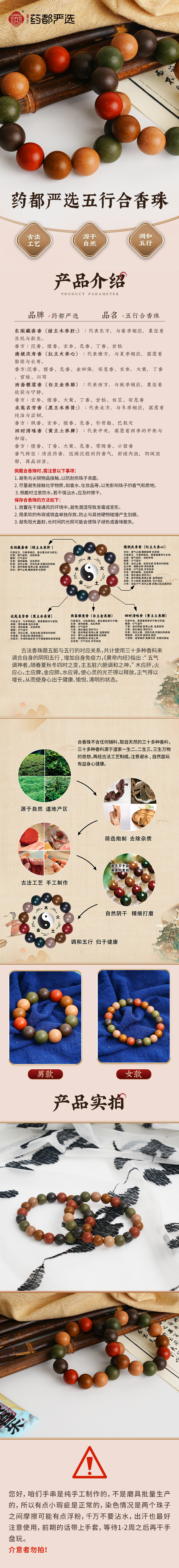 【药都严选】五行养身合香珠男款