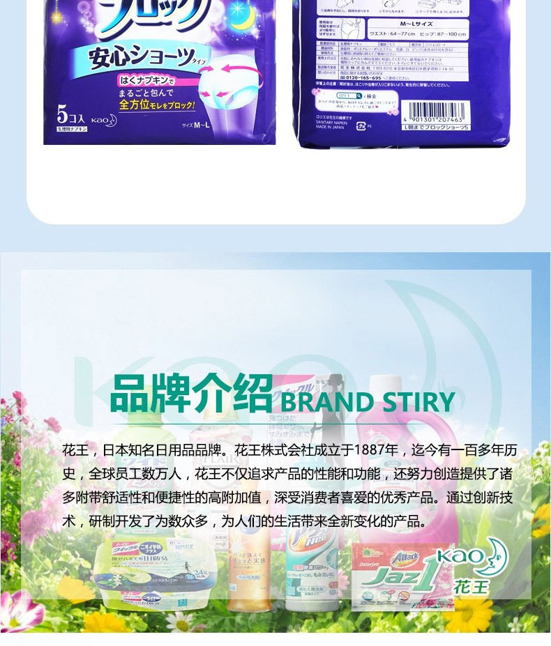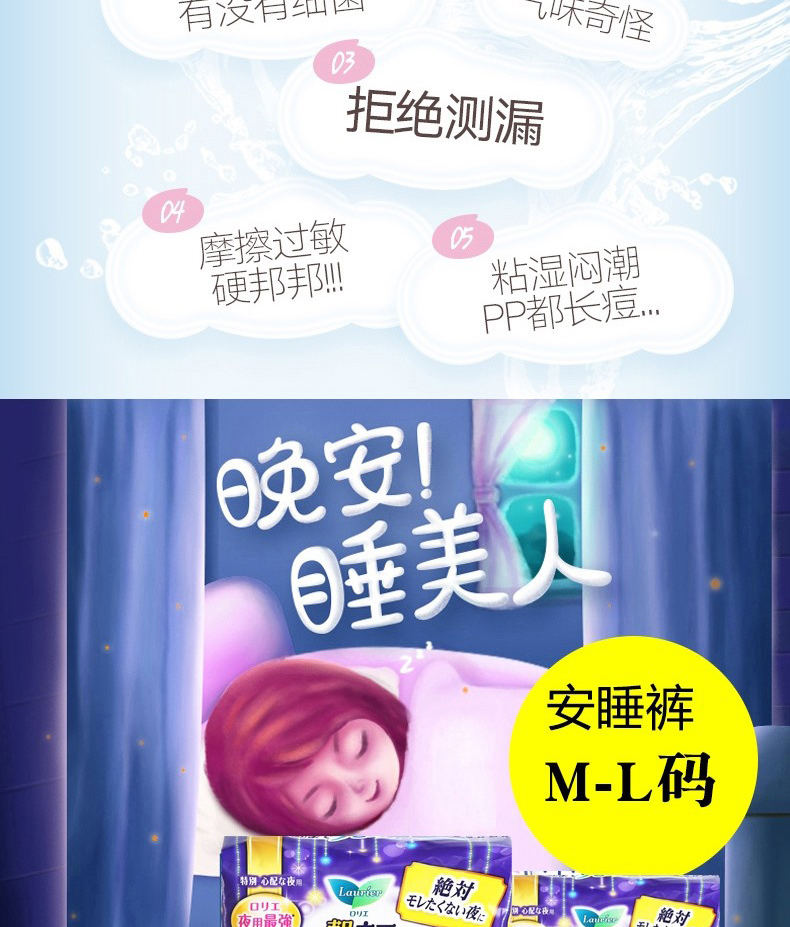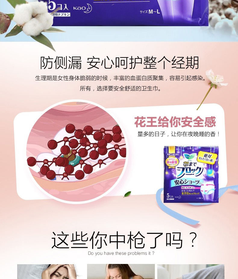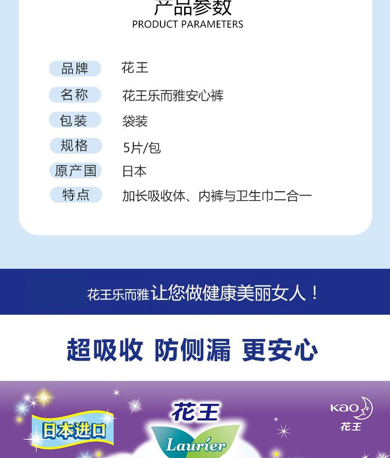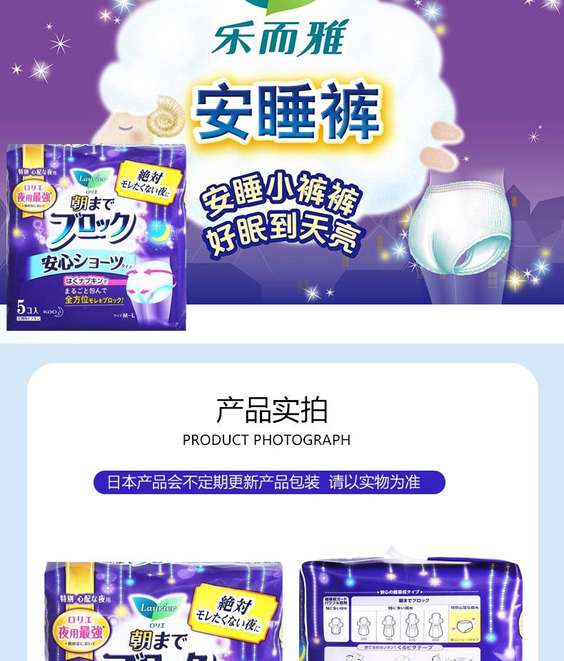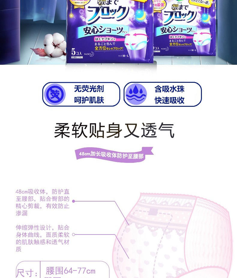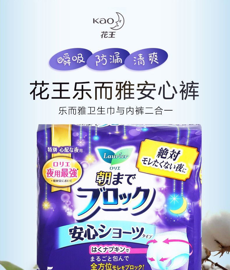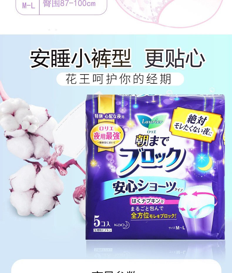 【3包】KAO花王 乐而雅夜用卫生巾安睡裤安心裤 5片/包