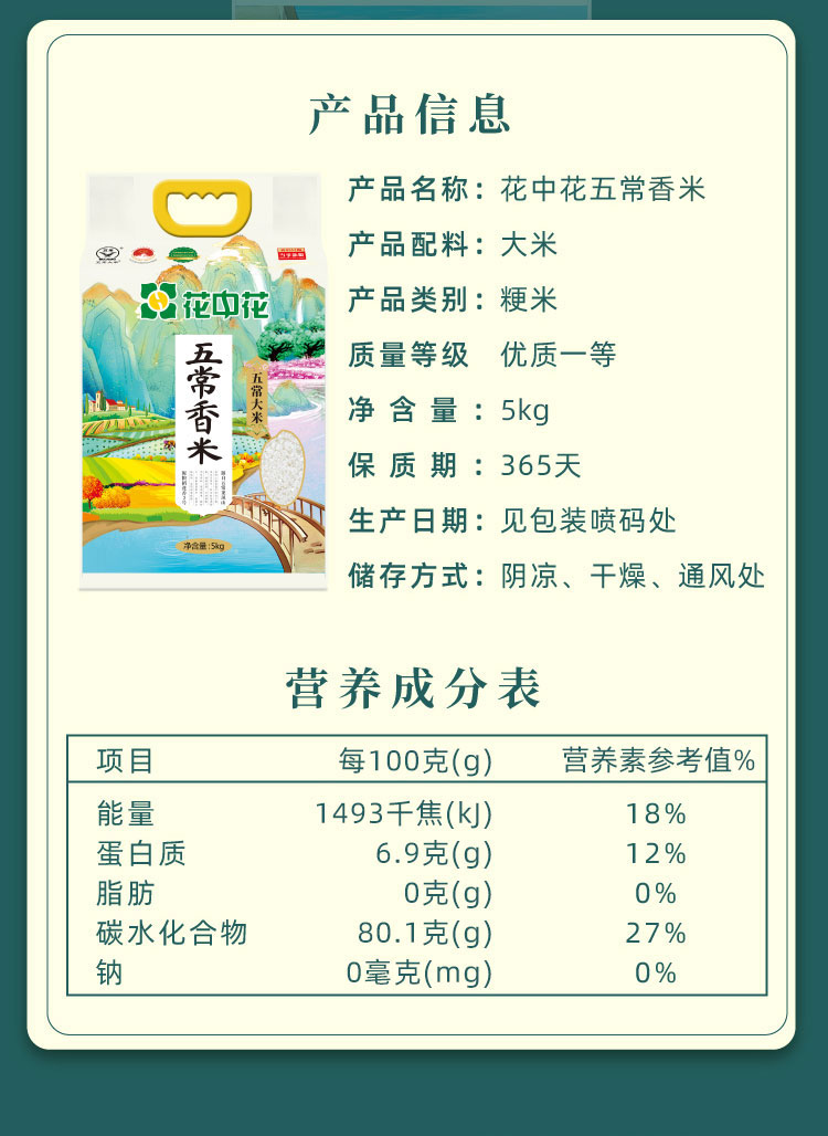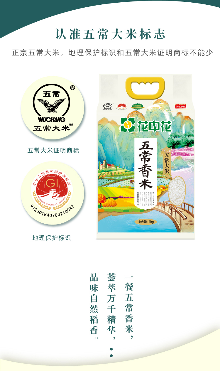 花中花 五常香米5kg 东北大米正宗五常稻花香10斤 粳米真空装