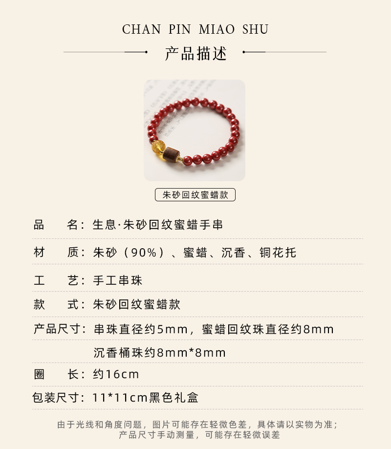敦煌【生息·朱砂回纹蜜蜡手串】敦煌福泽小众轻奢手串 中式国风手串配饰