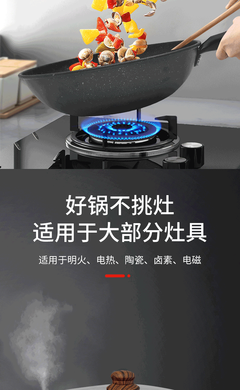 康佳(KONKA)KY-CG02M(S)家用不粘锅炒锅麦饭石牛排锅早餐锅燃气灶煤气灶电磁炉通用含玻璃盖
