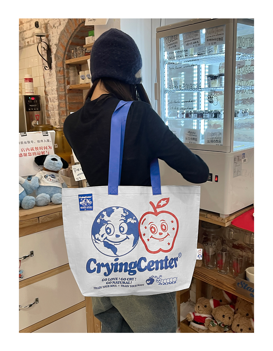CryingCenter 地球派对单肩手提大容量购物袋环保编织袋 哭喊中心