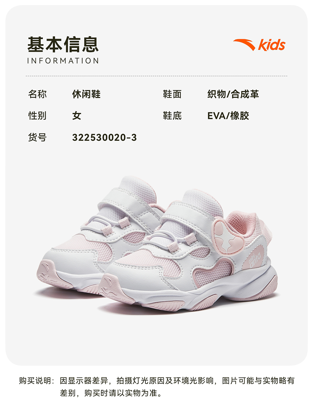 安踏儿童女婴童休闲鞋2025秋季新款舒适女宝宝学步鞋犟弹运动鞋子322530020