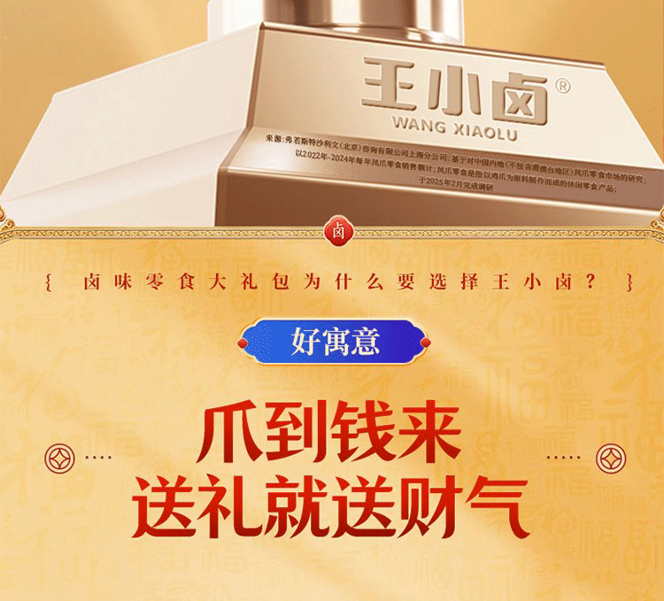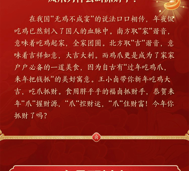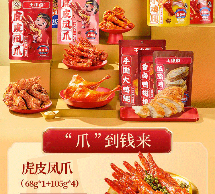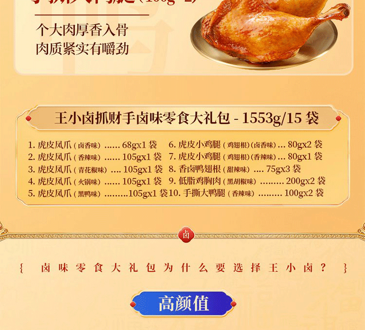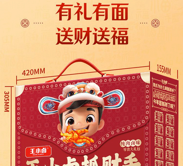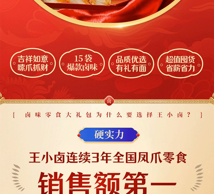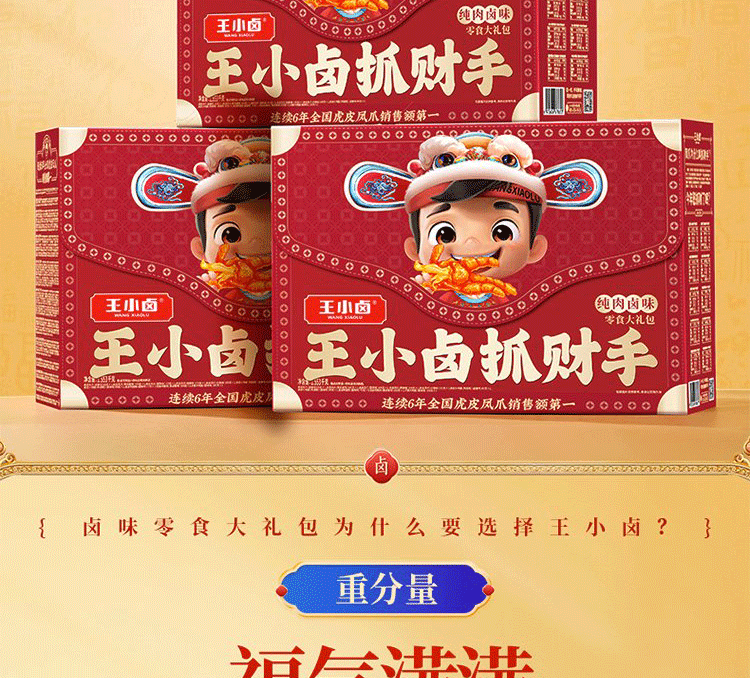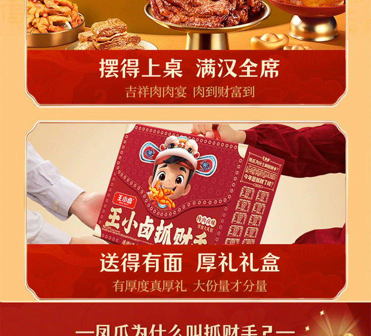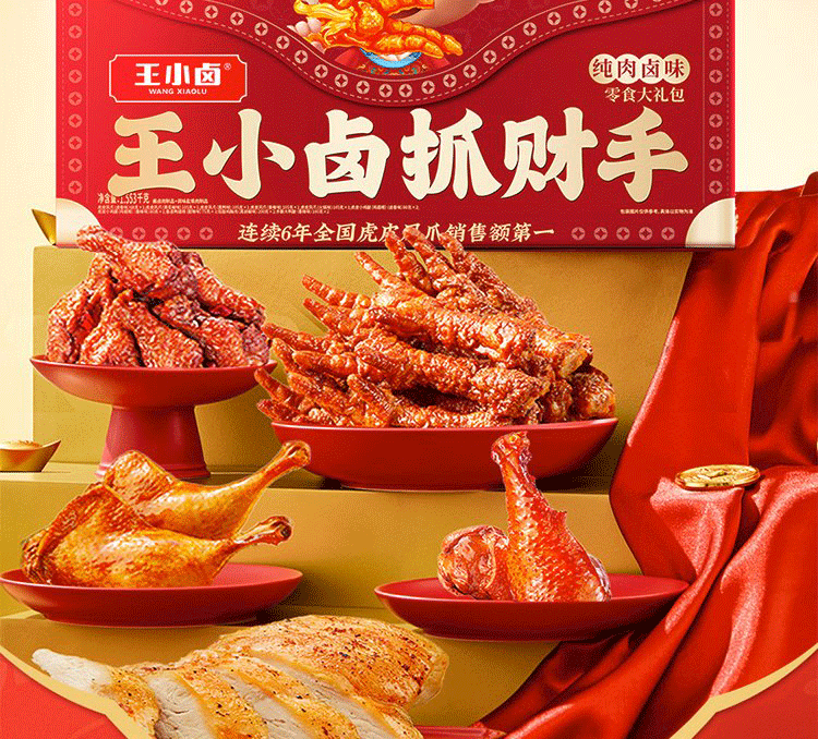 【抓财巨无霸】王小卤抓财手辣味零食礼盒1553g共10款!鸡爪猪蹄等,巨型礼盒,聚会C位,抓牢财运!