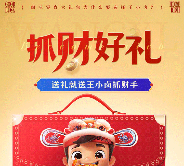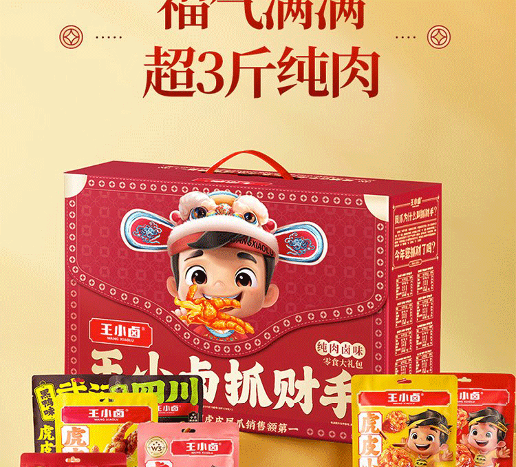 【经典抓财手】王小卤抓财手辣味零食礼盒1149g共10款!办公室零食库,补充能量,一起抓财气!