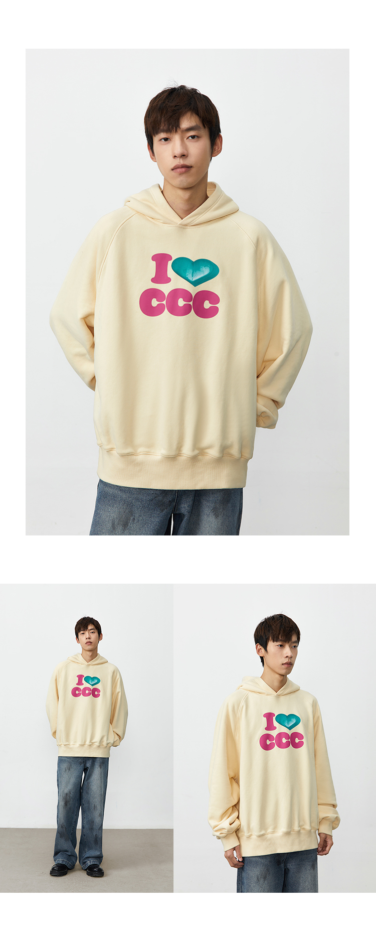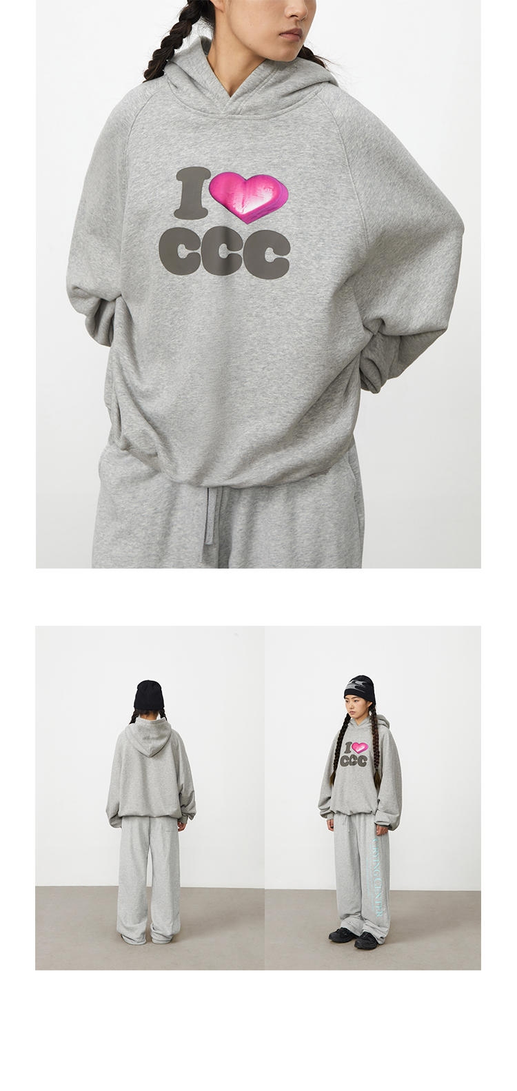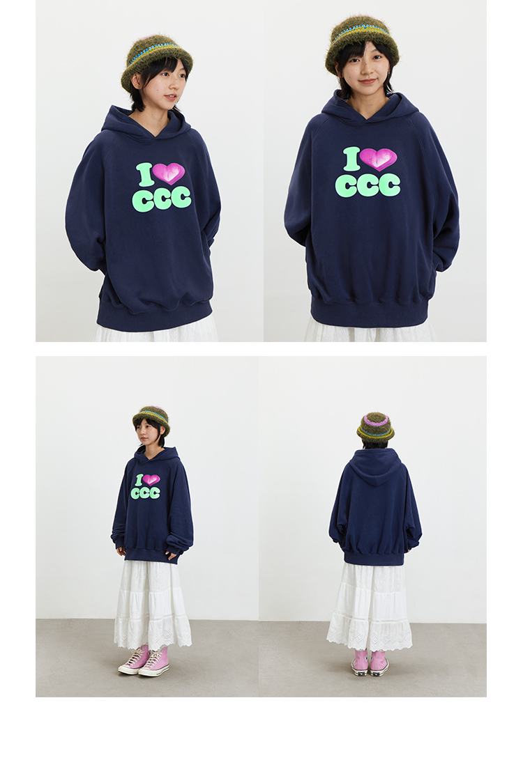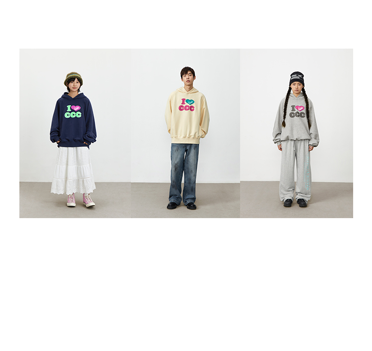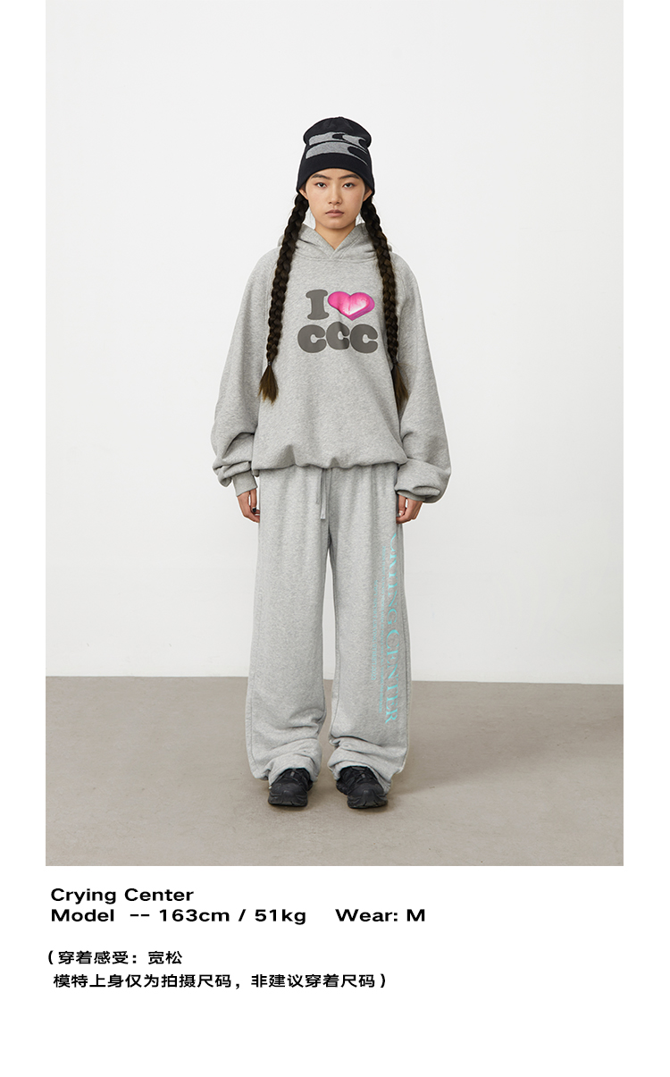 CryingCenter 爱心i love ccc 连帽套头卫衣休闲百搭情侣哭喊中心