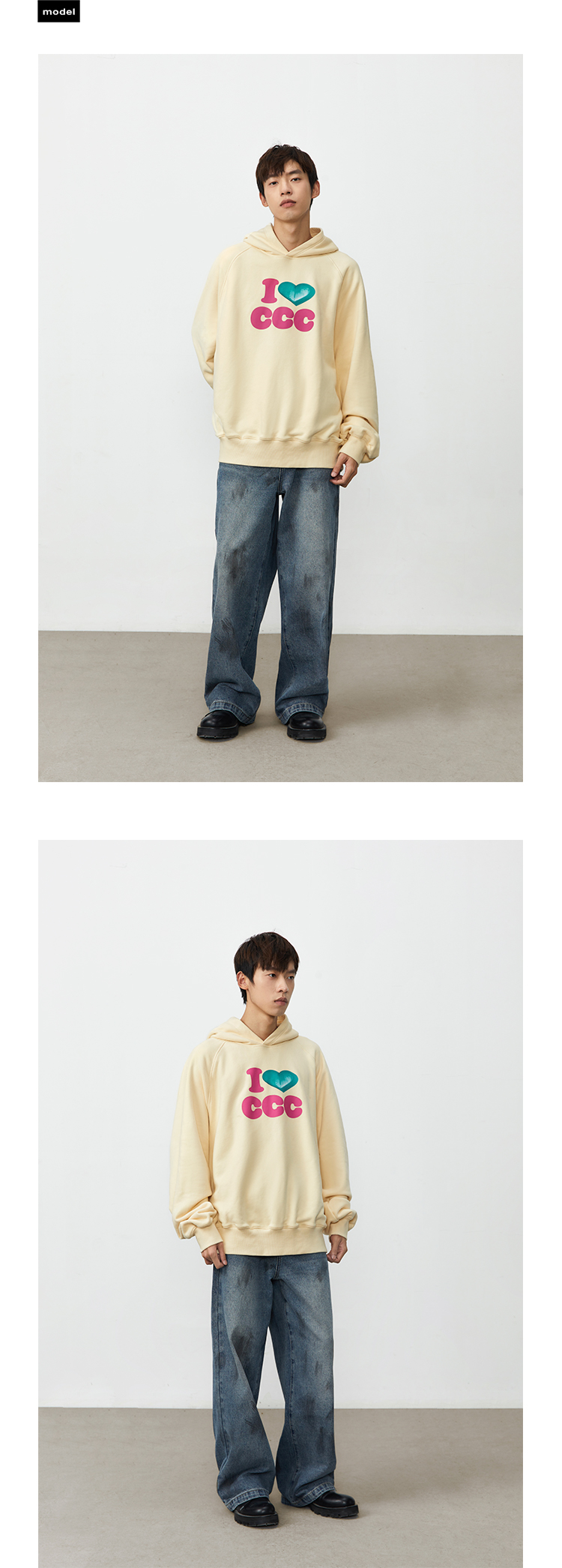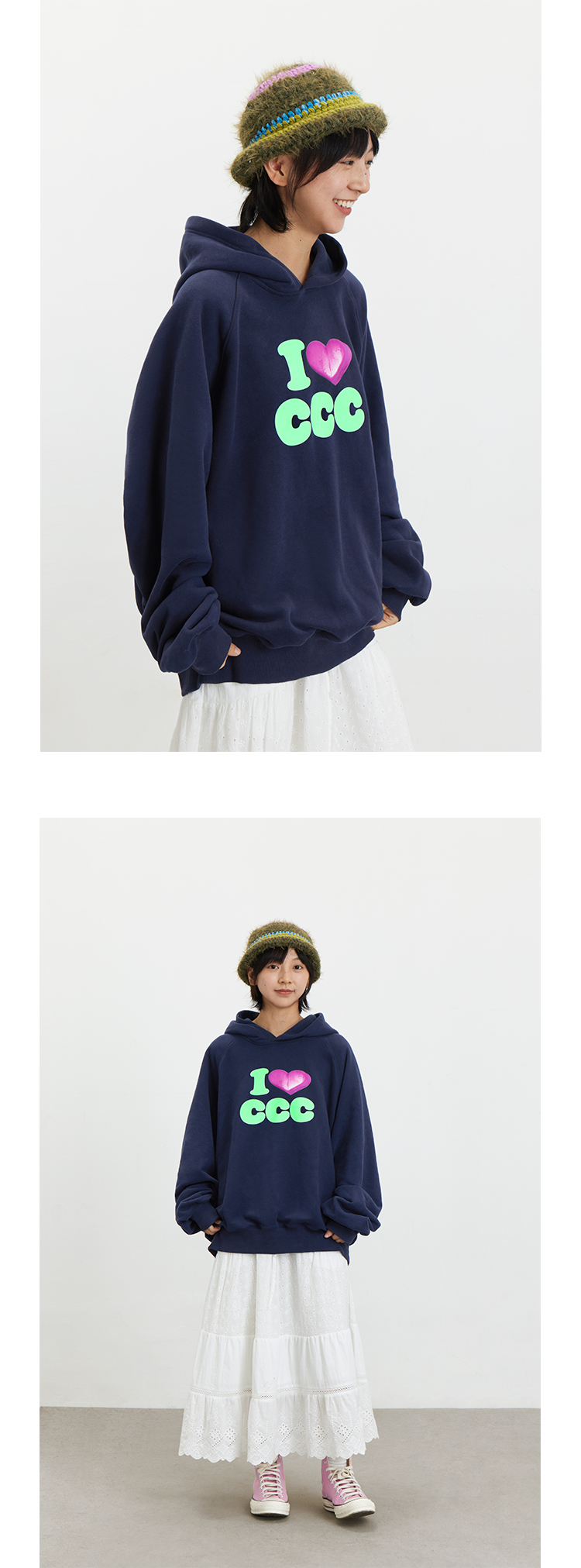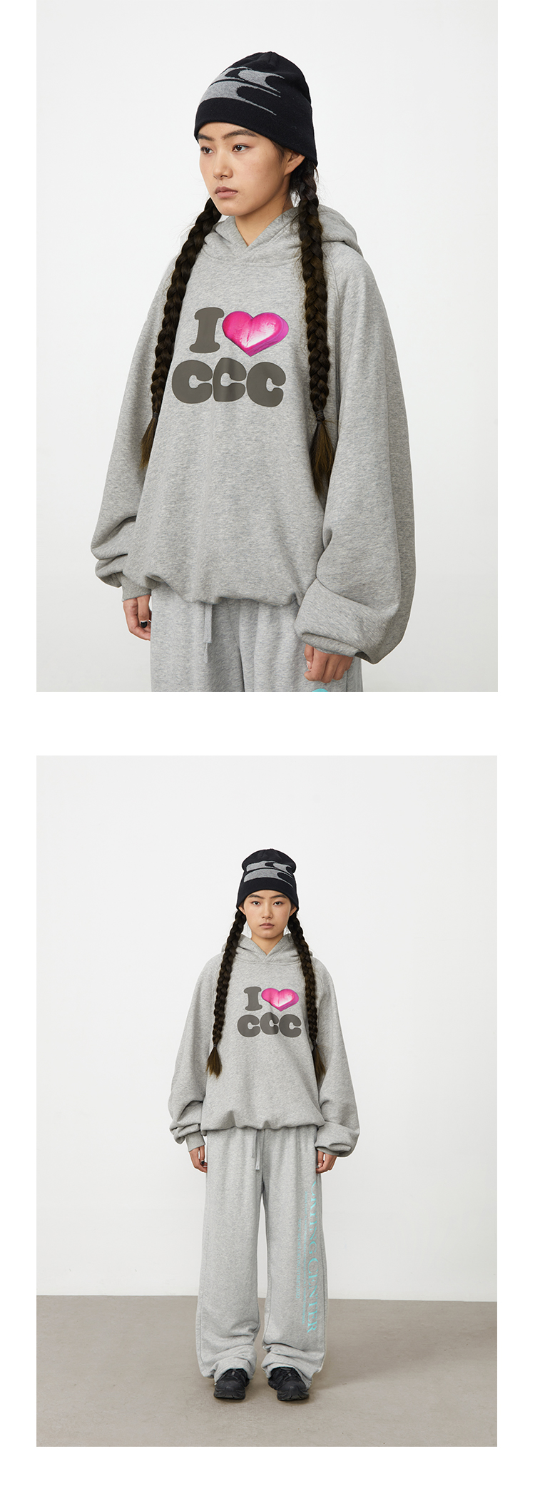 CryingCenter 爱心i love ccc 连帽套头卫衣休闲百搭情侣哭喊中心