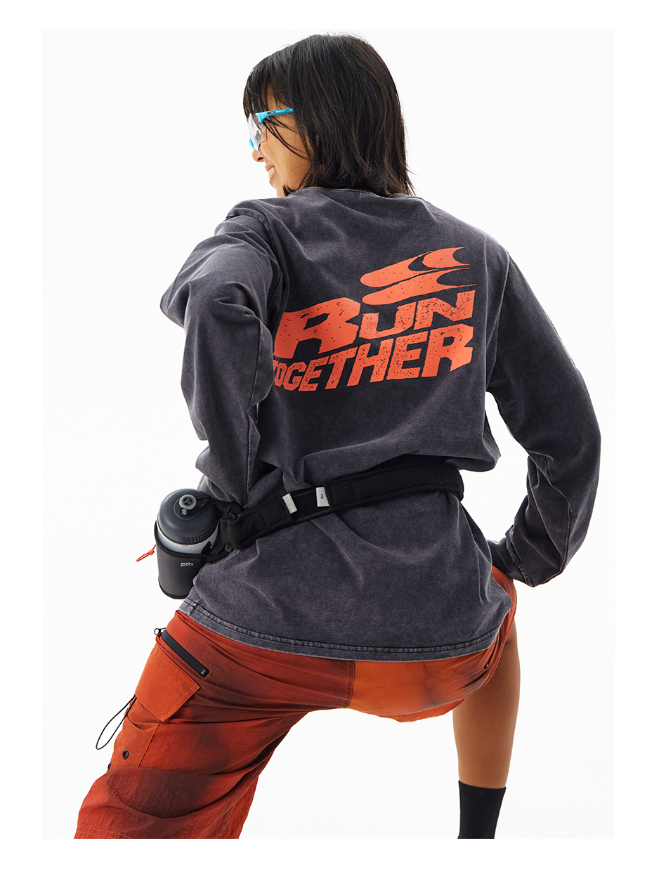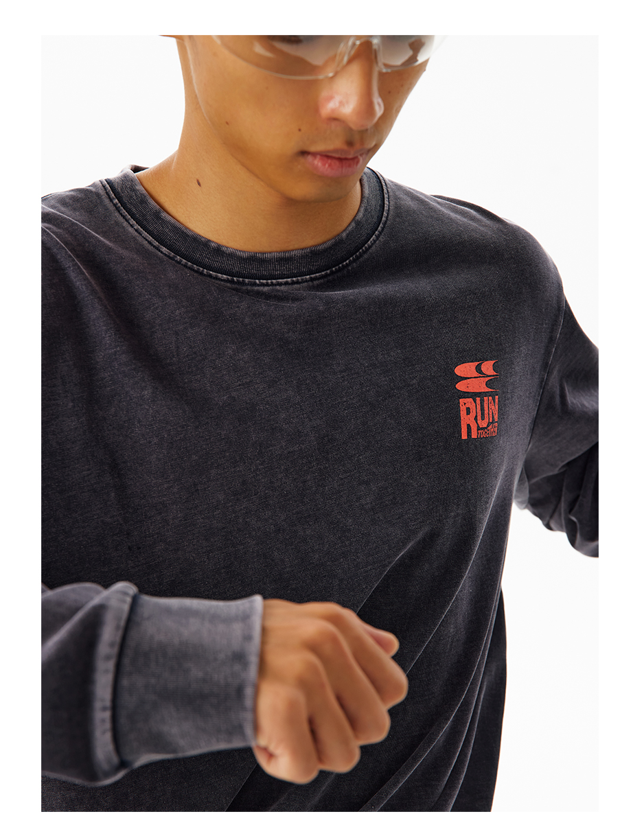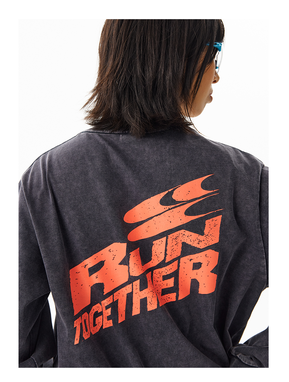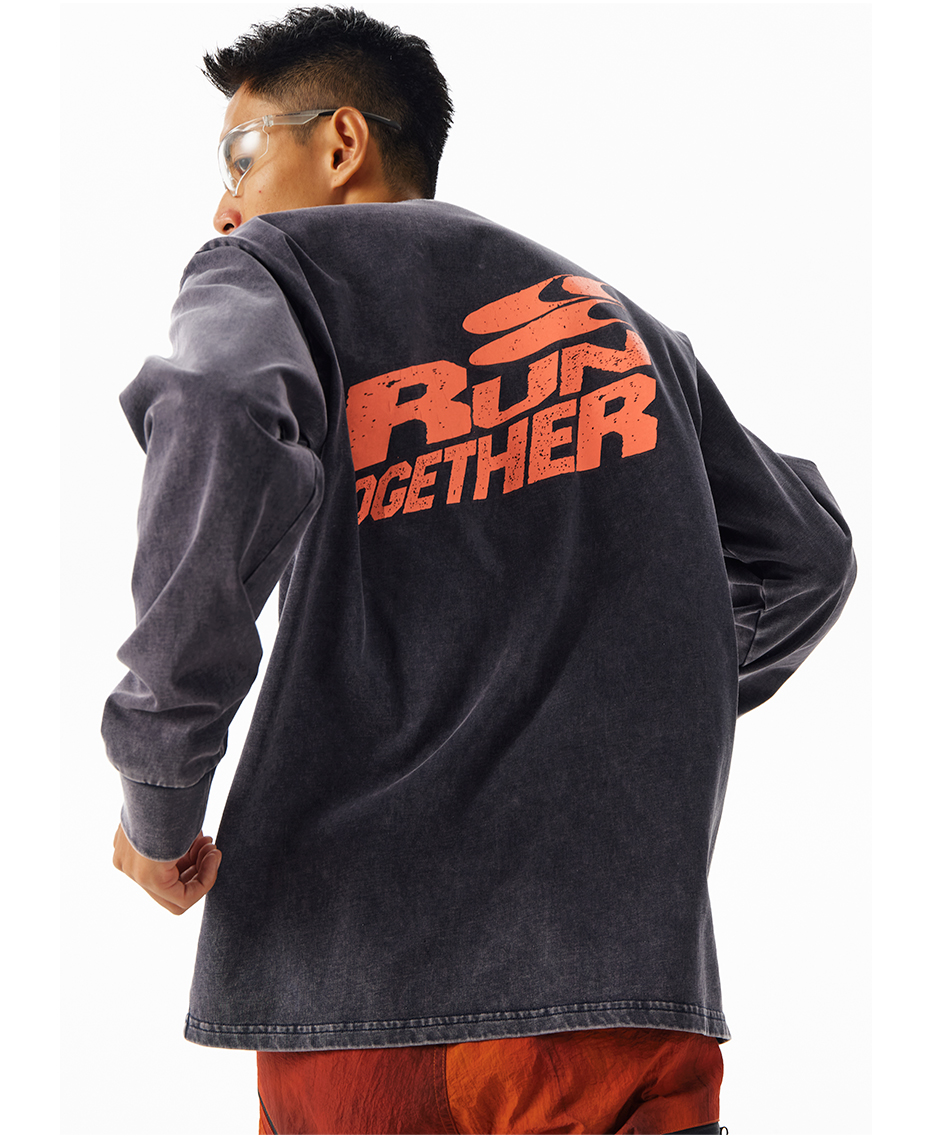 CryingCenter 阳光晒褪质感 Run Together一起跑步长袖上衣