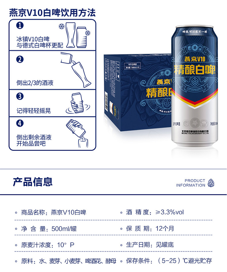 燕京 V10精酿白啤500ml*12罐 整箱装