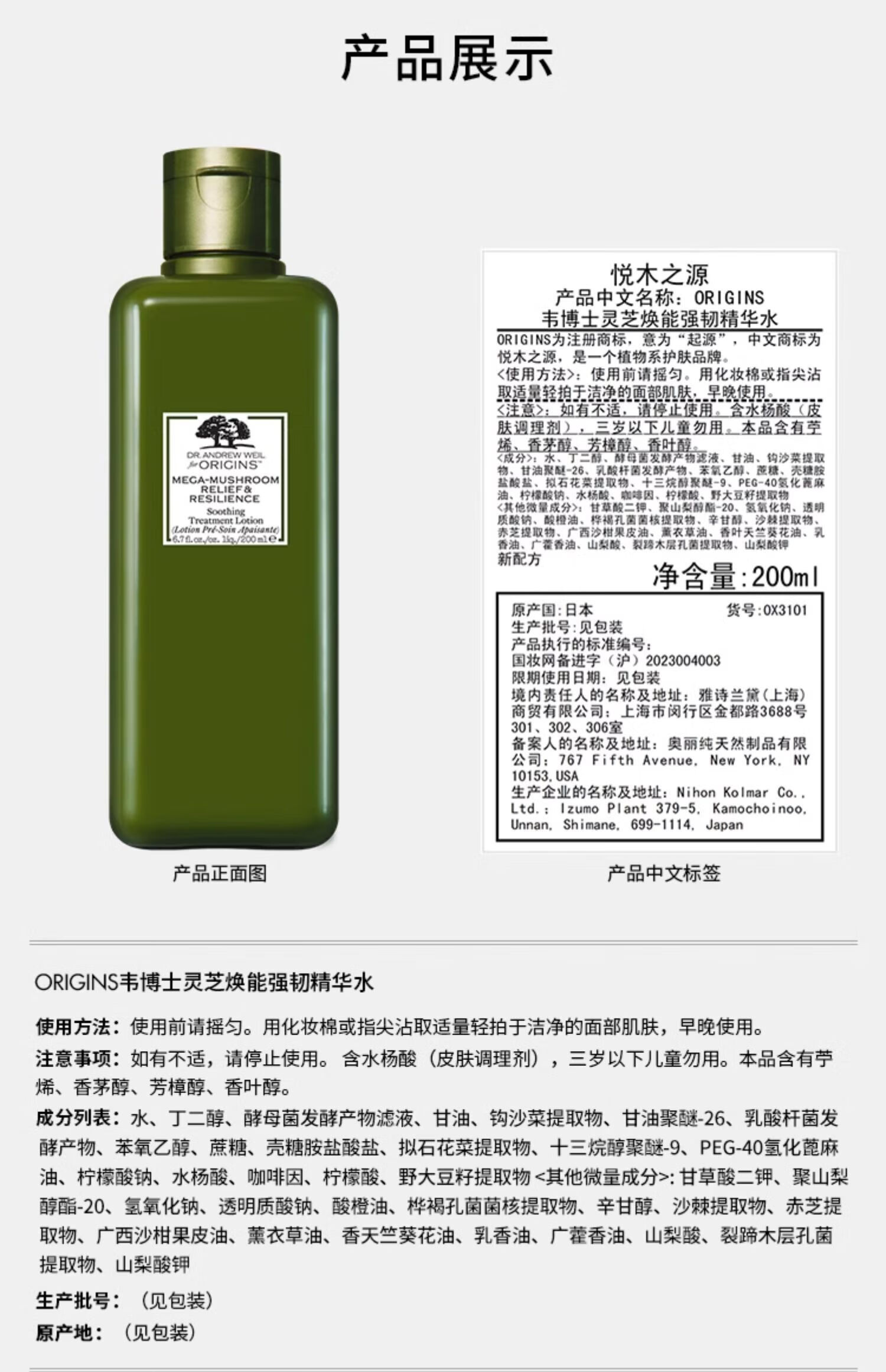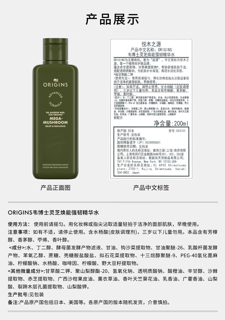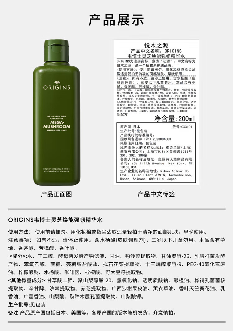 悦木之源菌菇水200ml 灵芝精华爽肤水