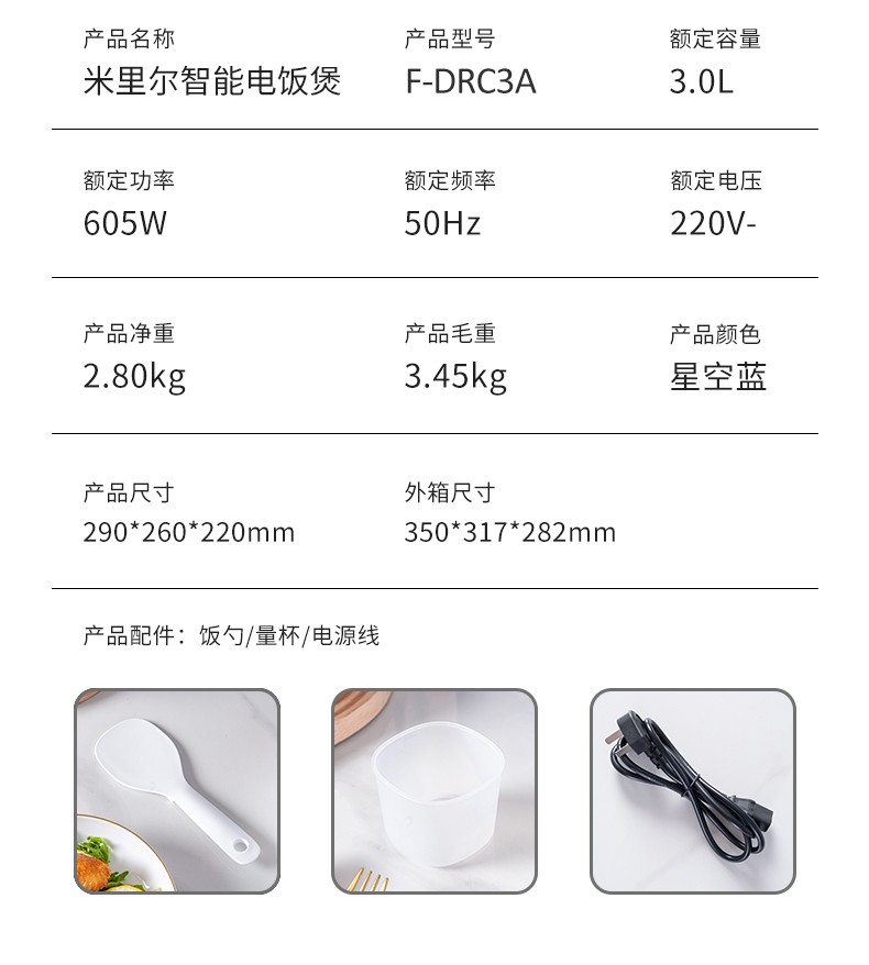 英国Finsybo菲斯宝米里尔智能电饭煲 3L F-DRC3A