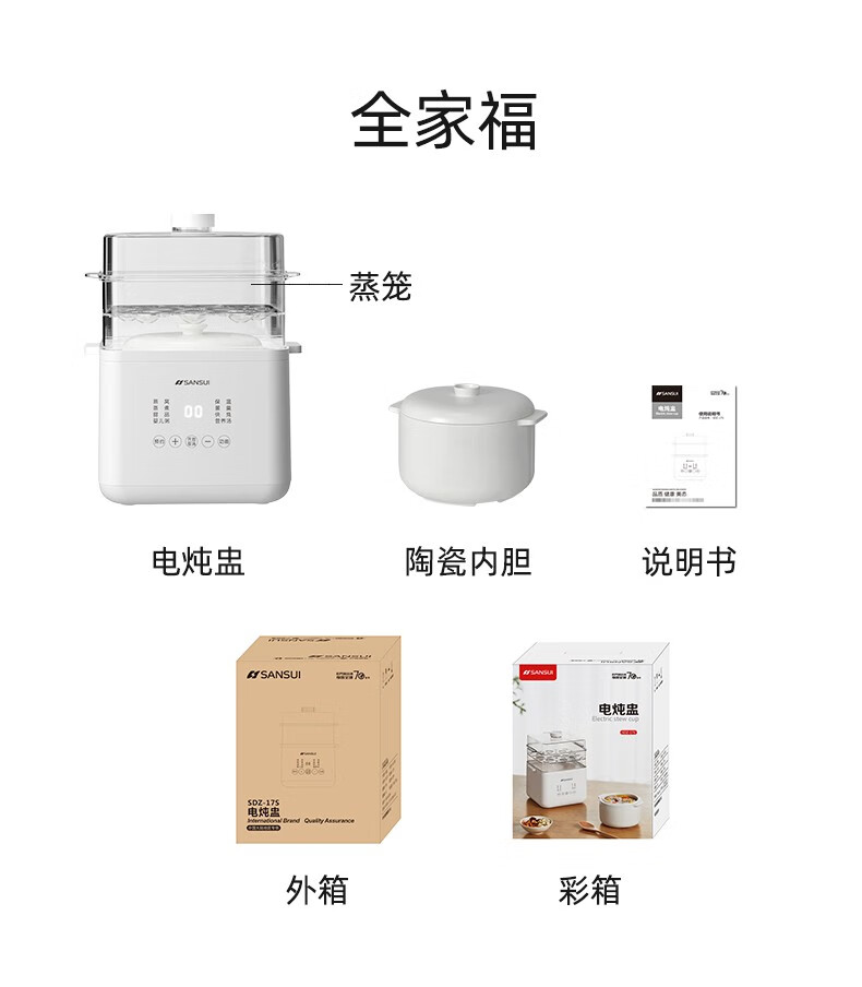 山水(SANSUI)多功能电炖盅炖锅SDZ-17S 白色