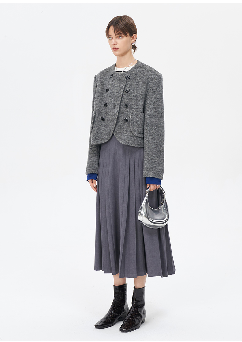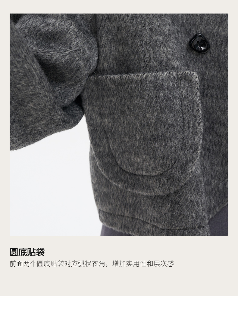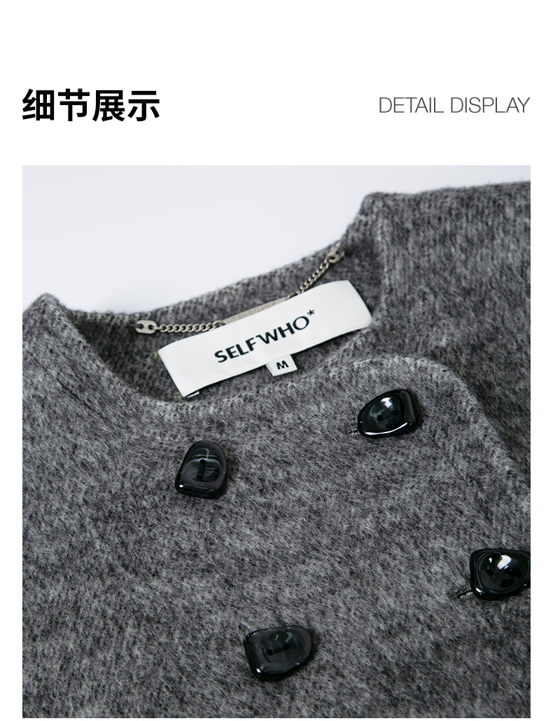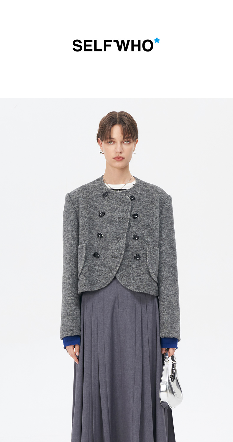 Self Who桑蚕丝羊毛双面呢短款外套女冬高级感灰色小个子呢子大衣