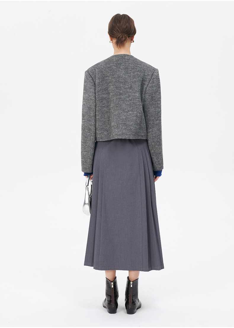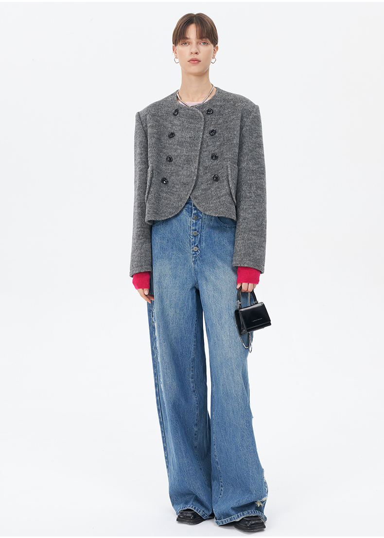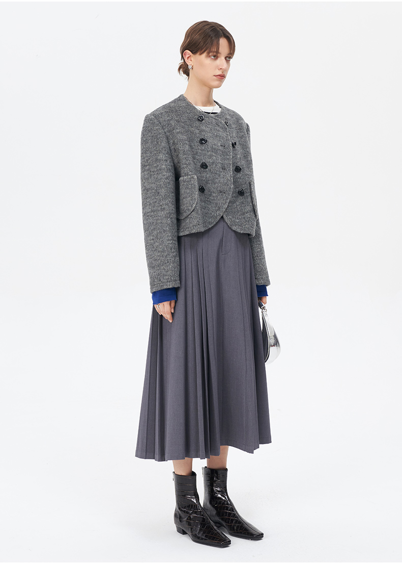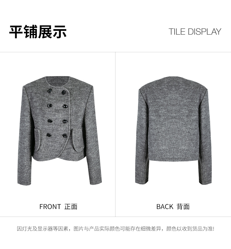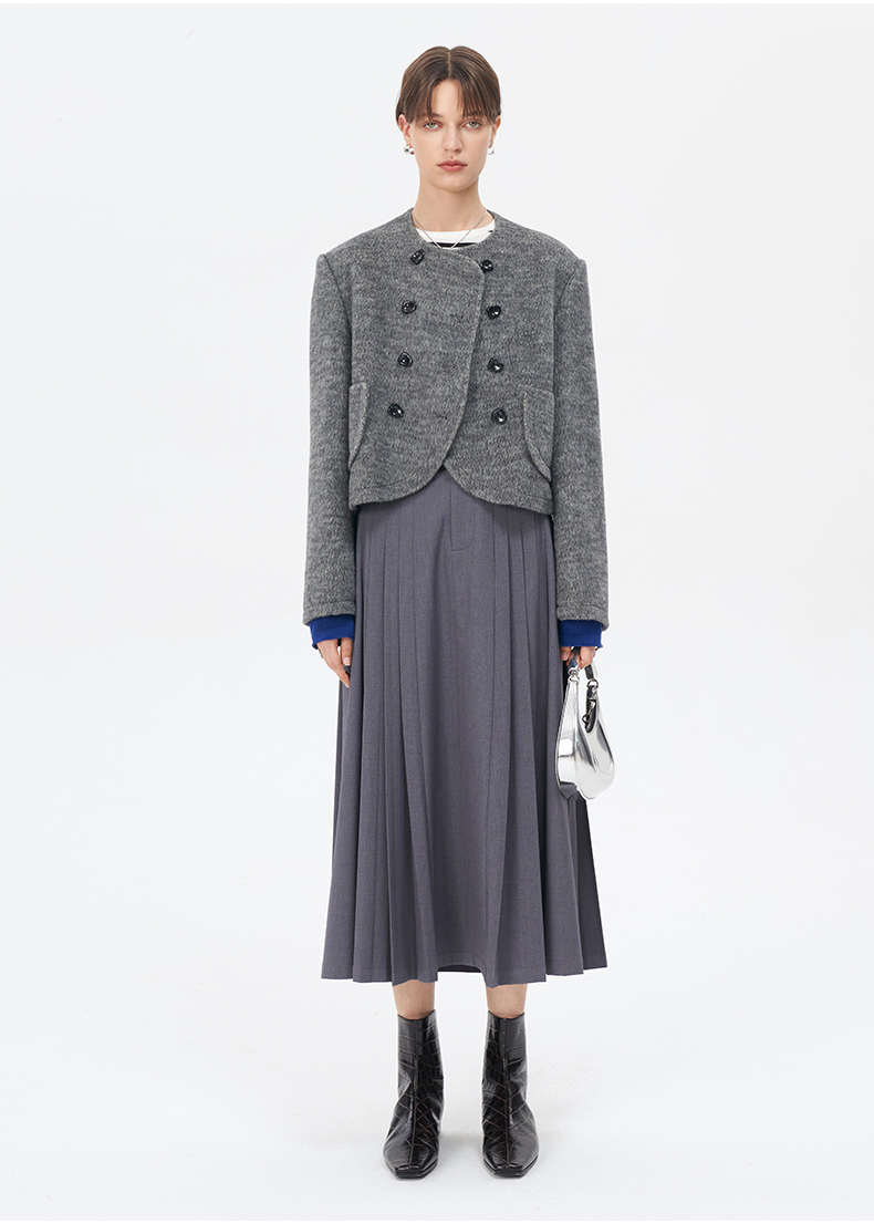 Self Who桑蚕丝羊毛双面呢短款外套女冬高级感灰色小个子呢子大衣