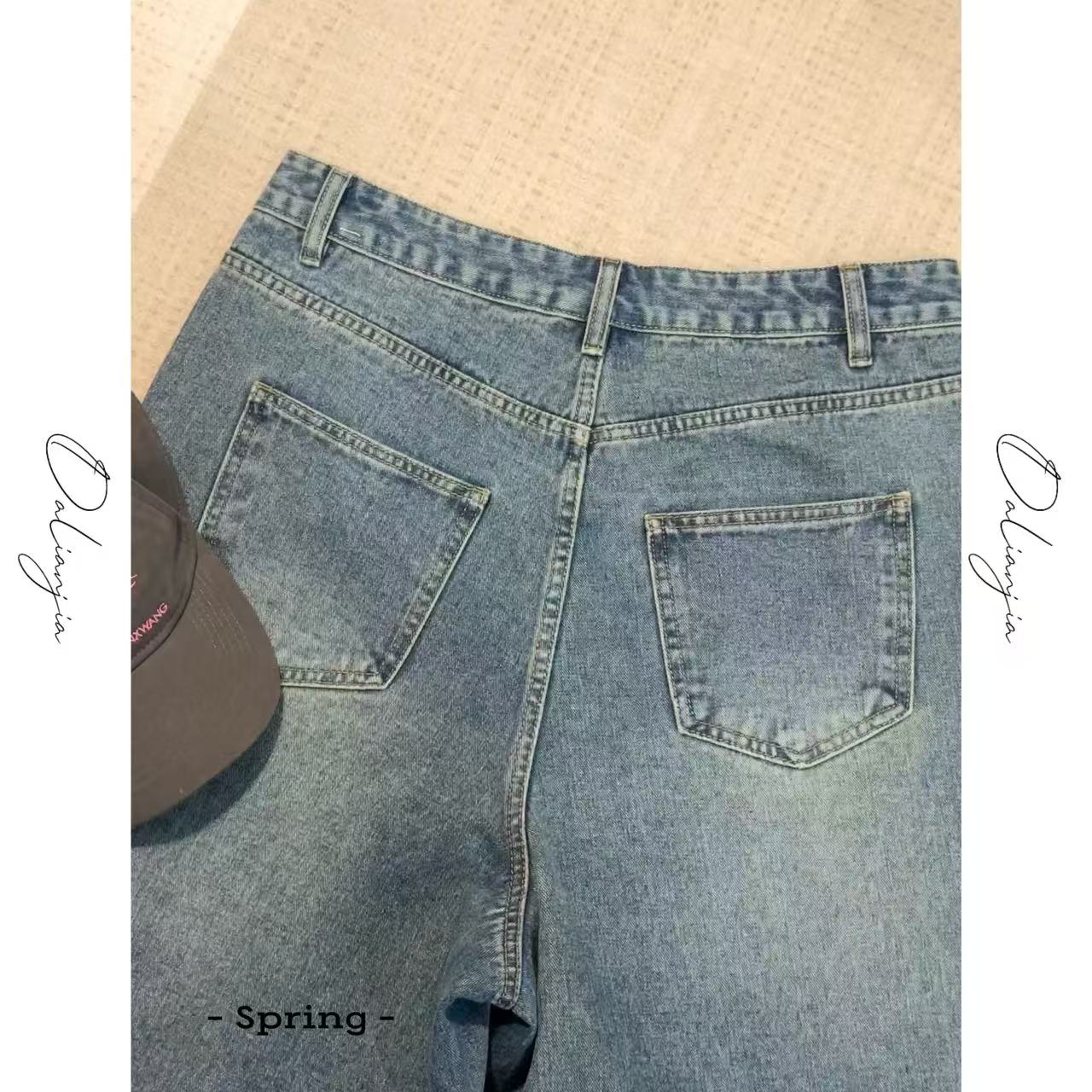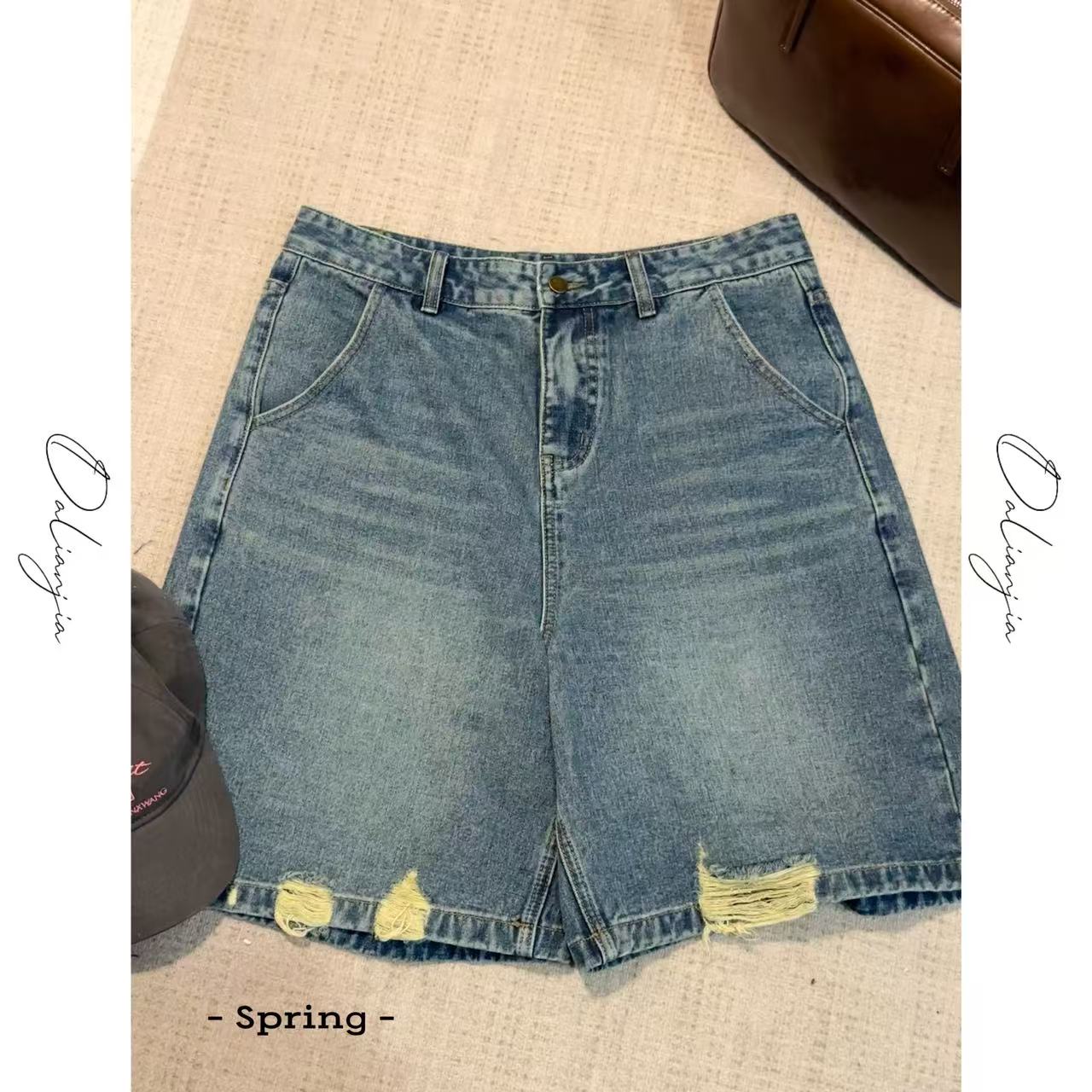 2025新品 佳佳同款【加州五分】设计感潮流破洞牛仔五分裤休闲宽松蓝色复古