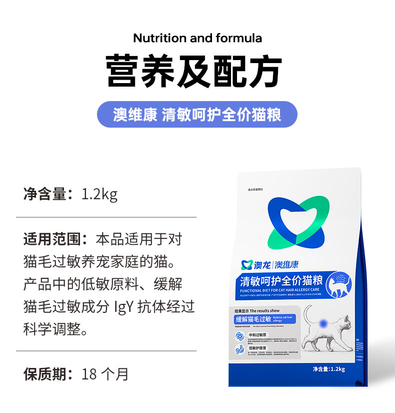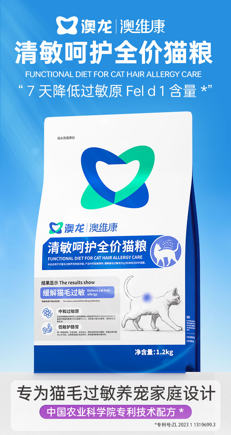 澳龙澳维康清敏呵护全价猫粮1.2kg赠50g试吃