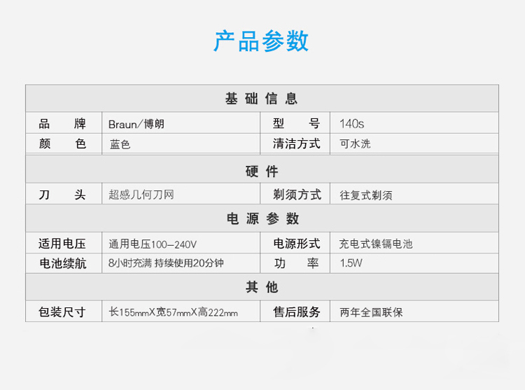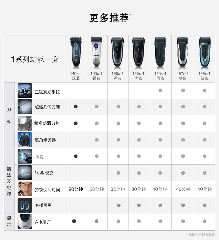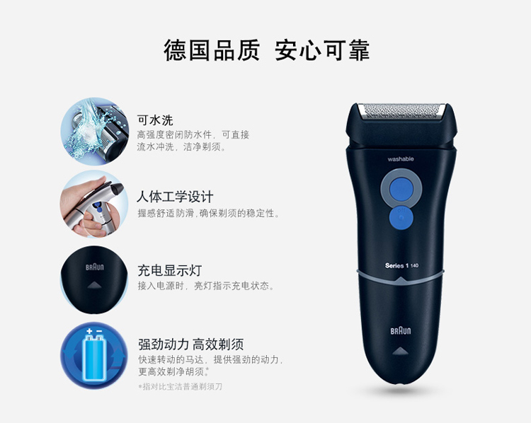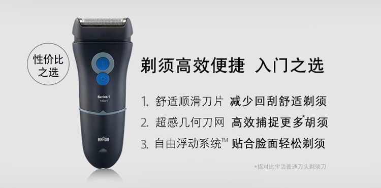 博朗(BRAUN) 男士剃须刀电动刮胡刀往复式胡须刀单刀头1系140s
