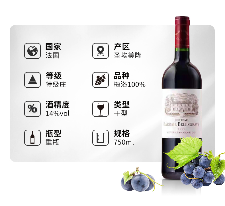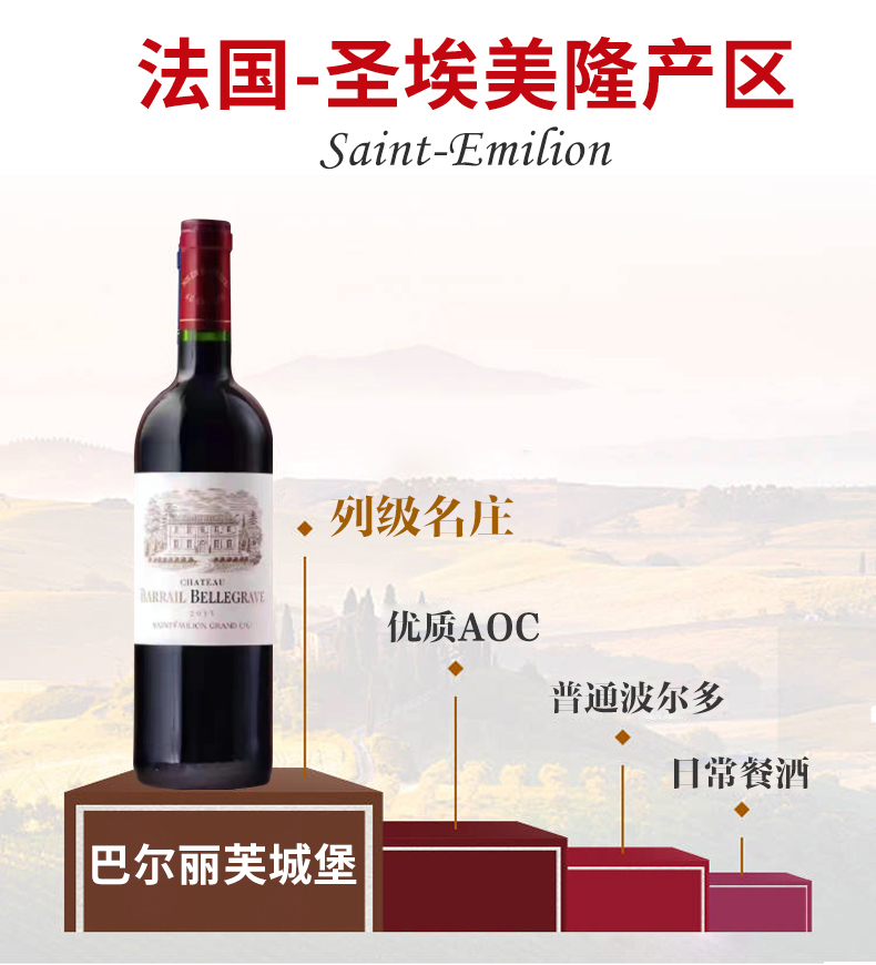 【6瓶装】法国进口巴尔丽芙城堡干红葡萄酒14%vol 750ml/瓶
