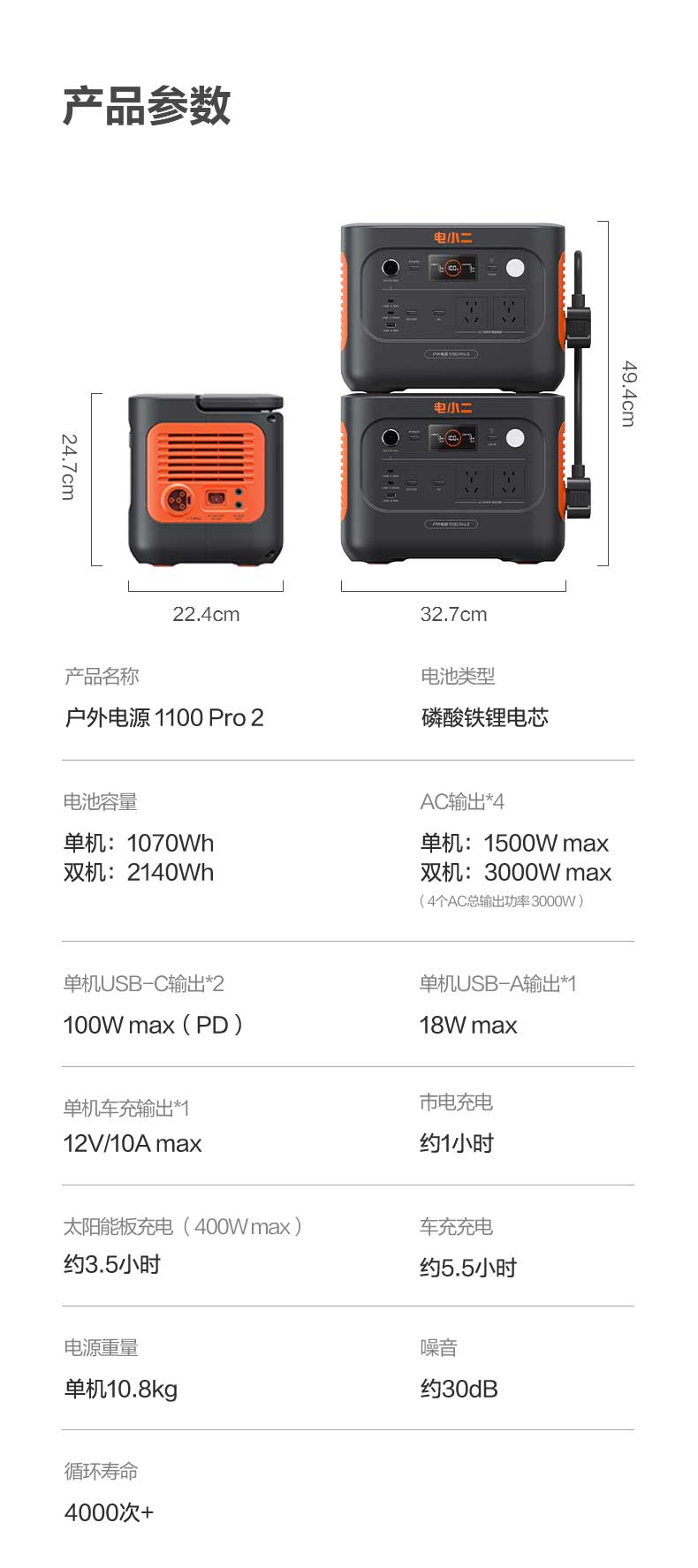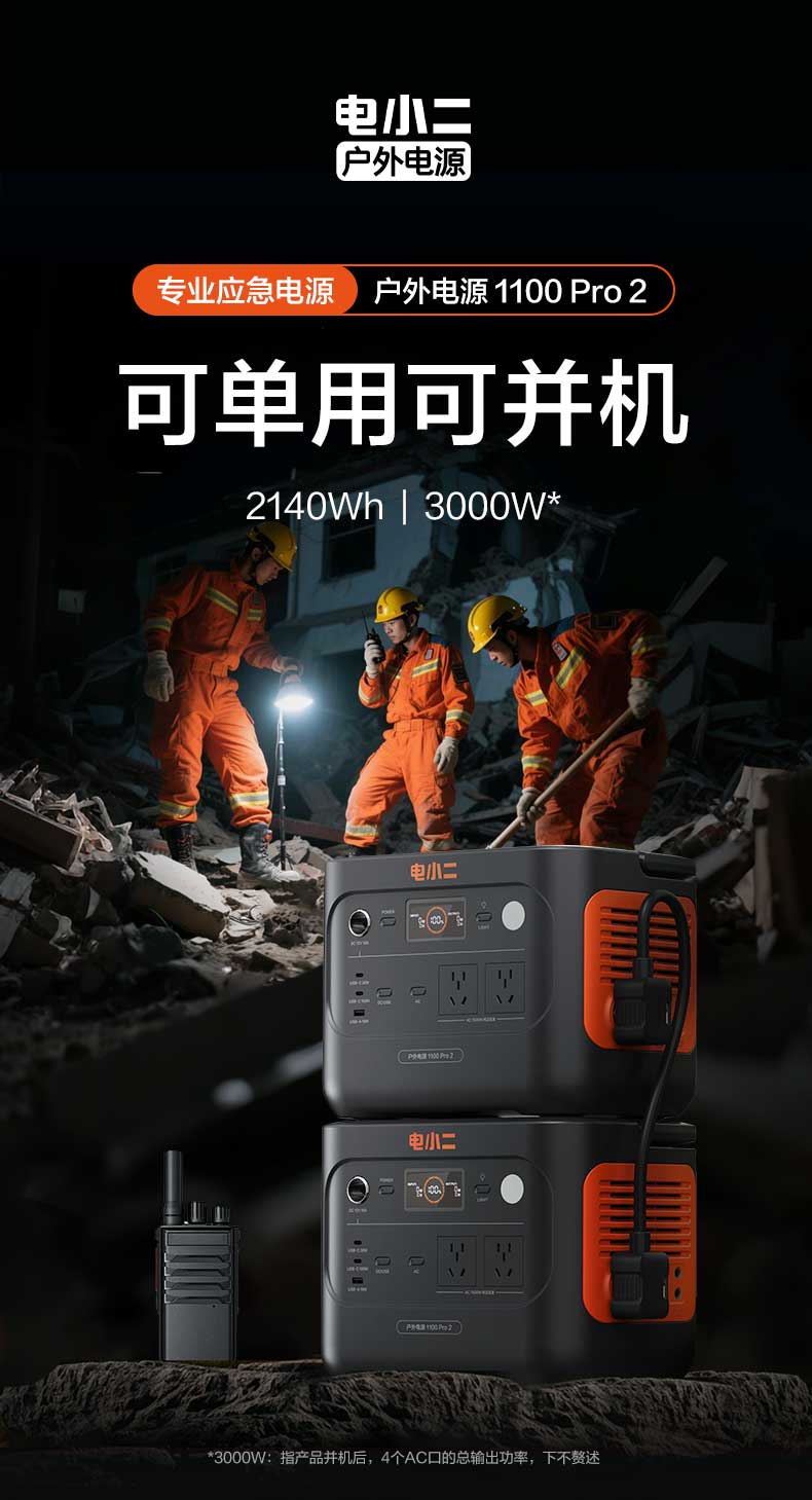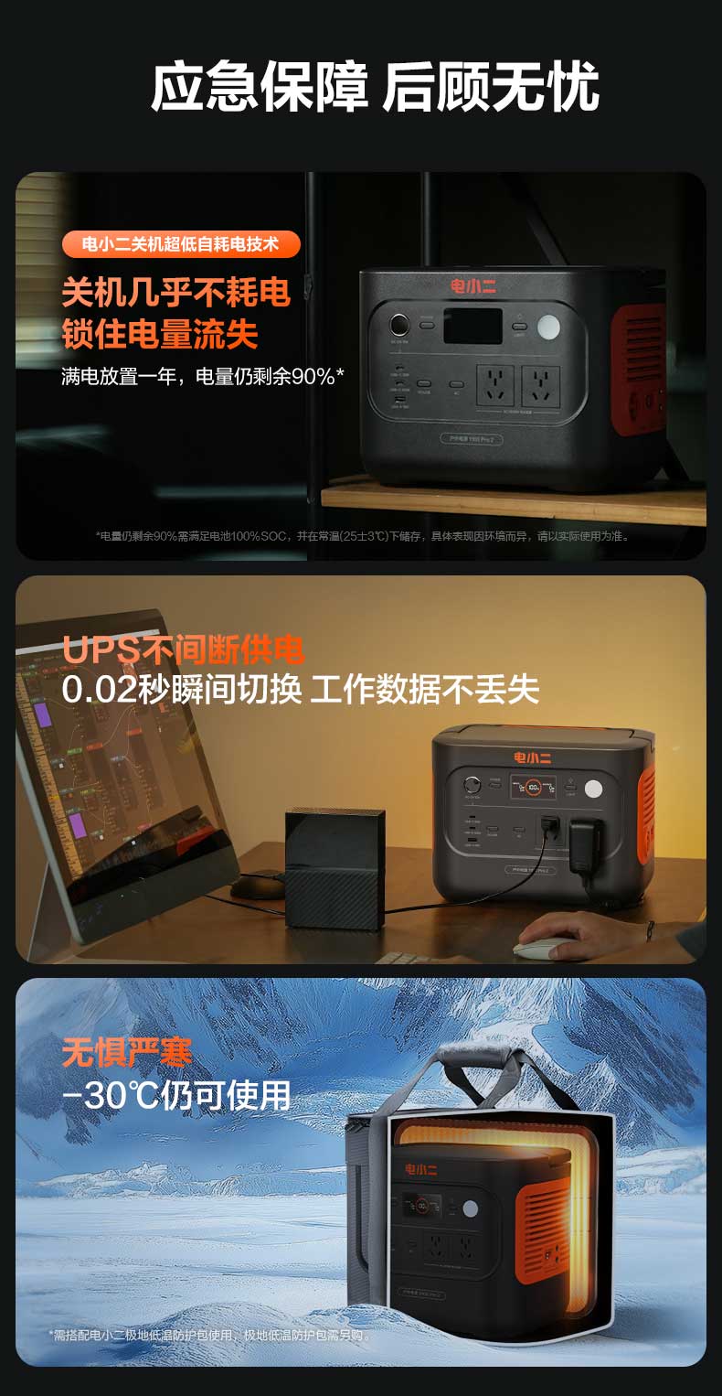 电小二【可单用可并机】户外电源大功率大容量220V移动电源自驾野营停电应急备用储能电池1100Pro2