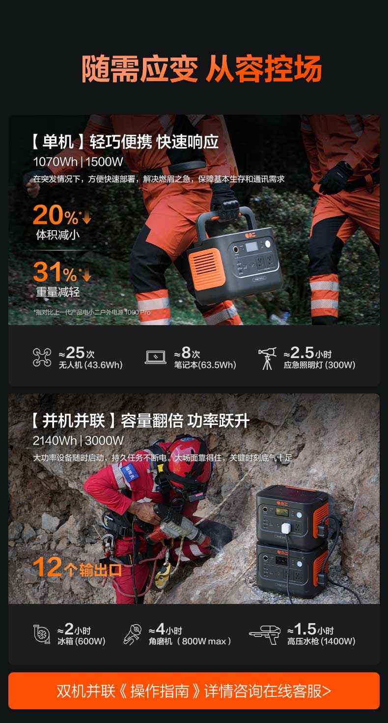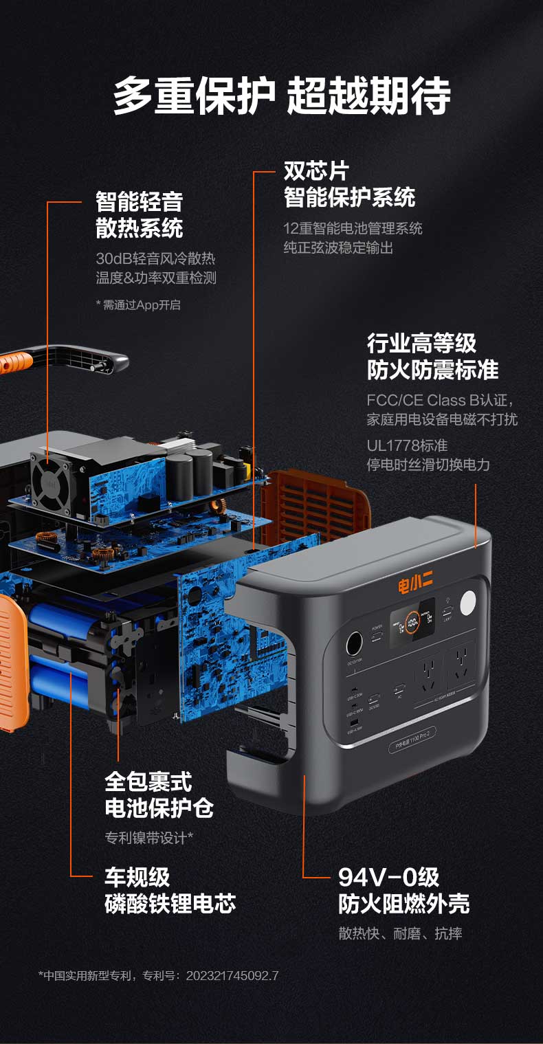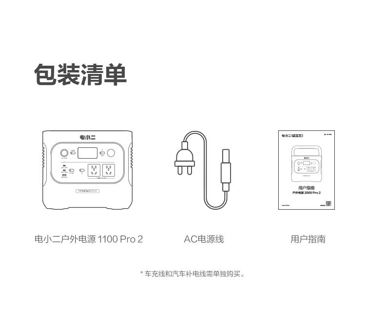 电小二【可单用可并机】户外电源大功率大容量220V移动电源自驾野营停电应急备用储能电池1100Pro2