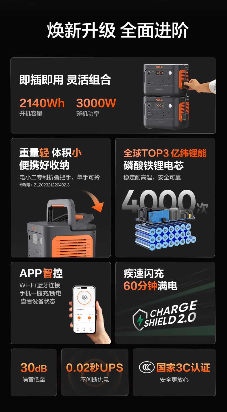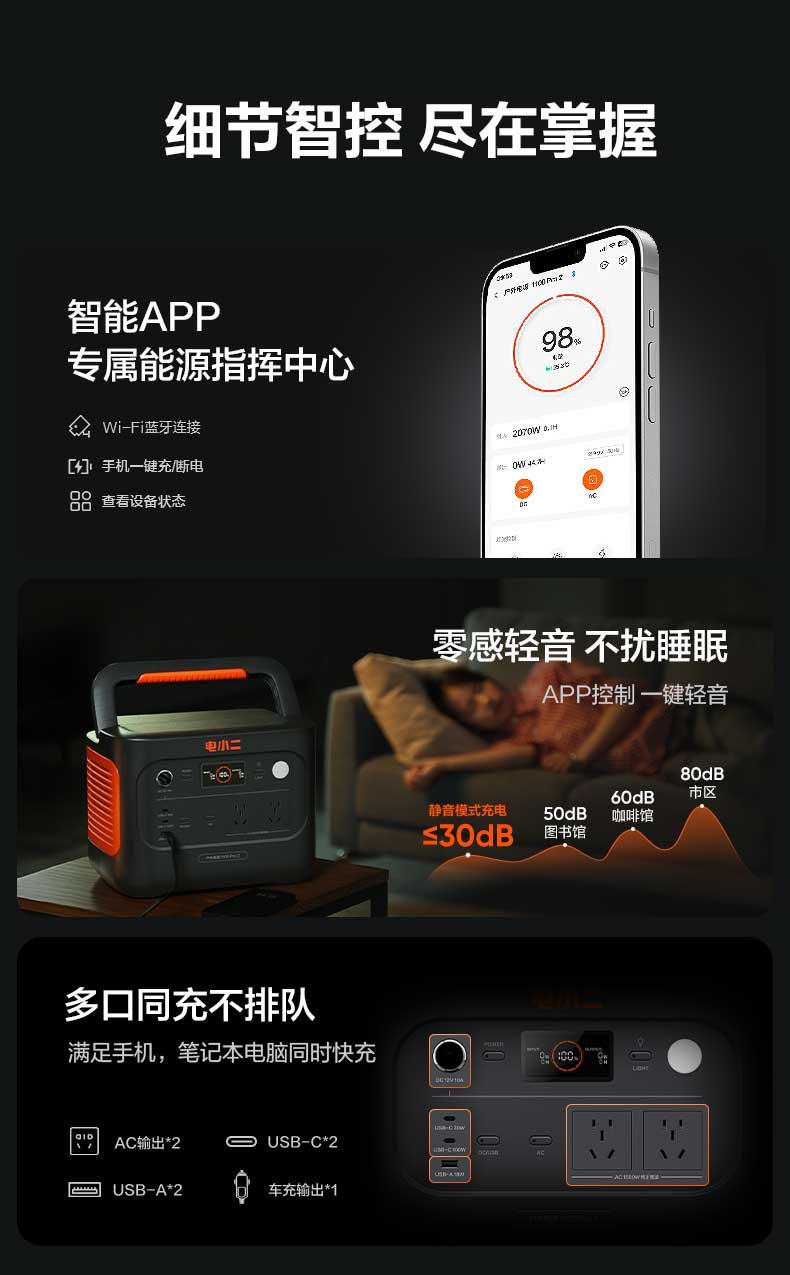 - 电小二户外电源是光充户外电源领导品牌,便携储能行业起草单位之一,致力于提供可持续便携绿色能源解决方案。