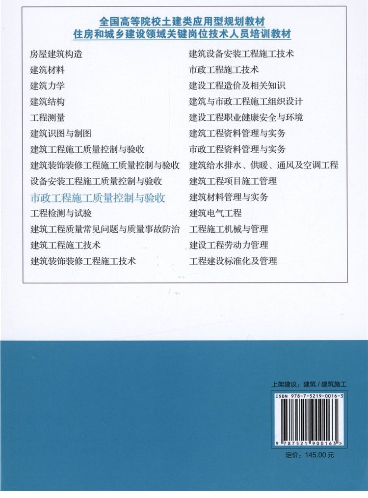 市政工程施工质量控制与验收 第3版 0016 全国高等院校土建类应用型规划教材住房和城乡建设领域关键岗位技术人员培训教材中国林业
