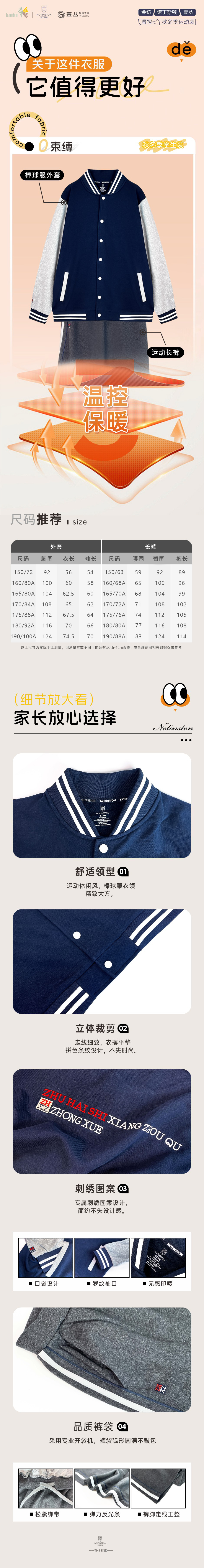 【珠海电台专享-初中秋冬外套-瑞士温控面料四季恒温】香洲区中学生校服 秋冬季棒球服外套&深灰色长裤
