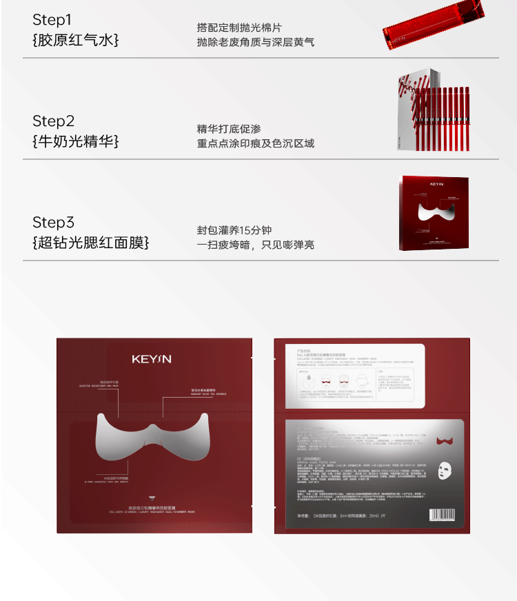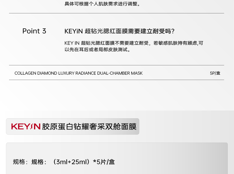 【新品上新】Keyin胶原蛋白钻耀奢采双舱面膜 1盒装 (5片/盒)紧致/保湿/舒缓