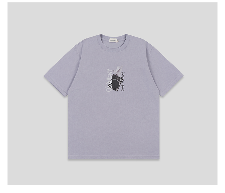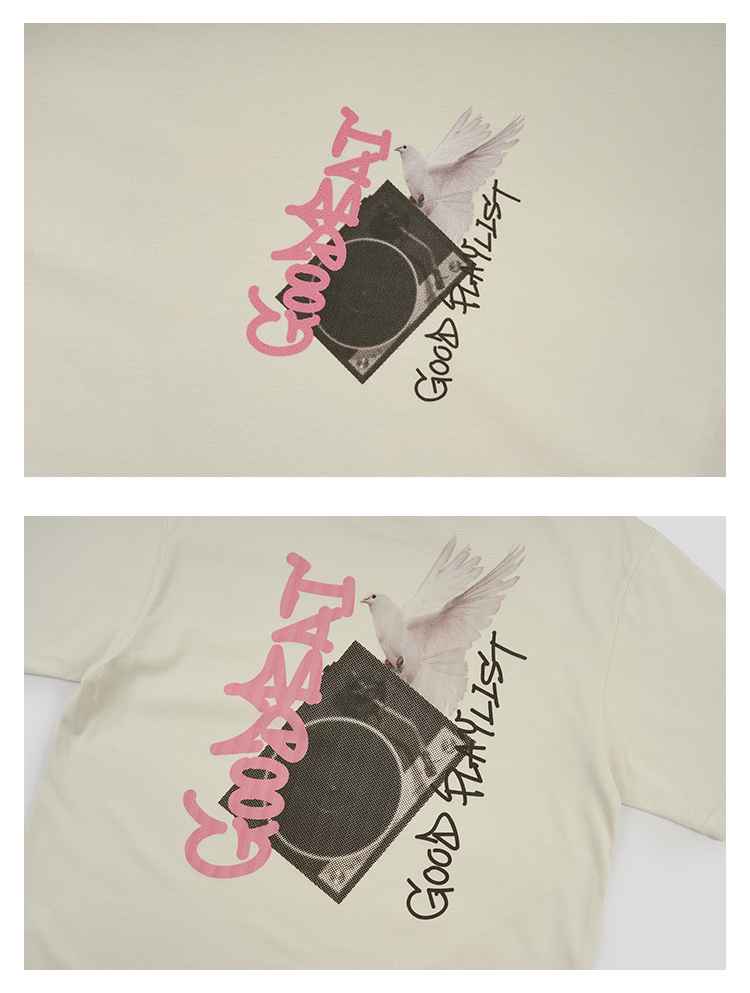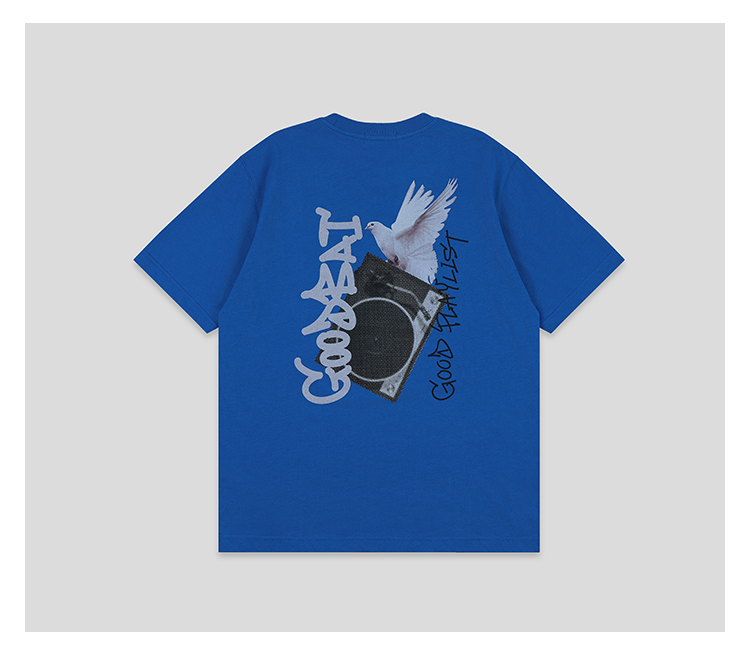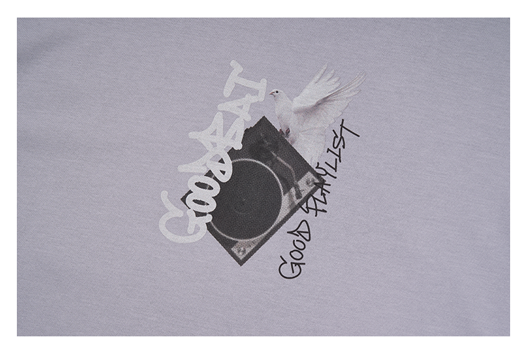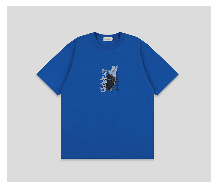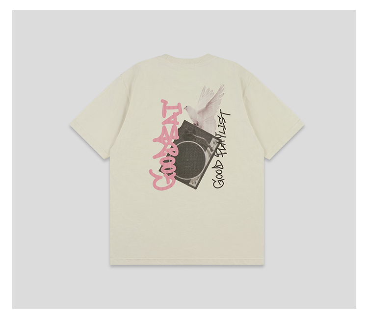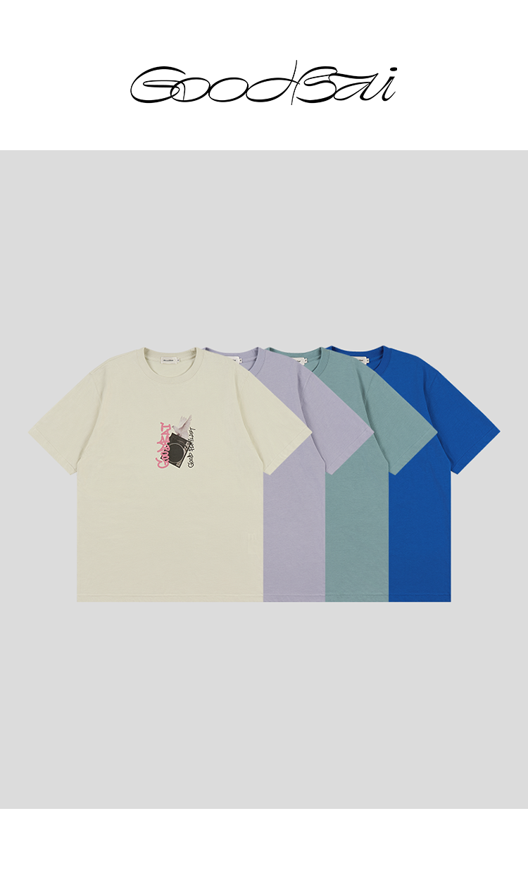 GOODBAI 唱片机logo印花圆领oversize短袖T恤