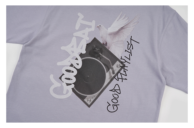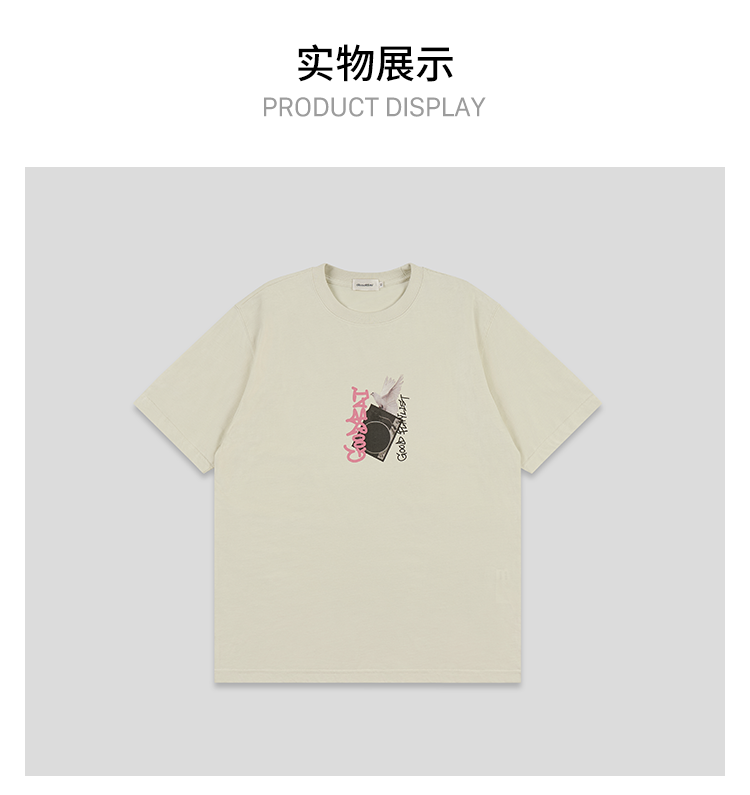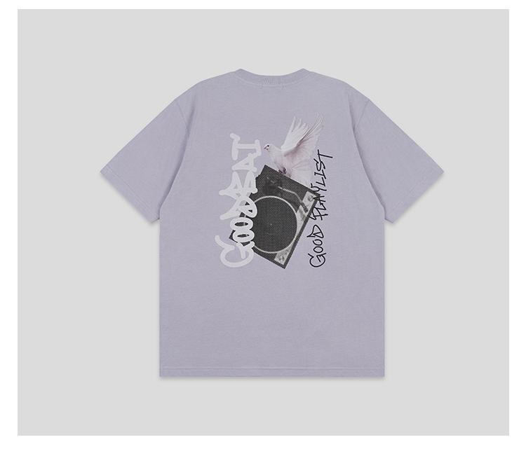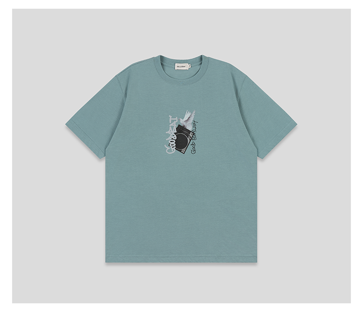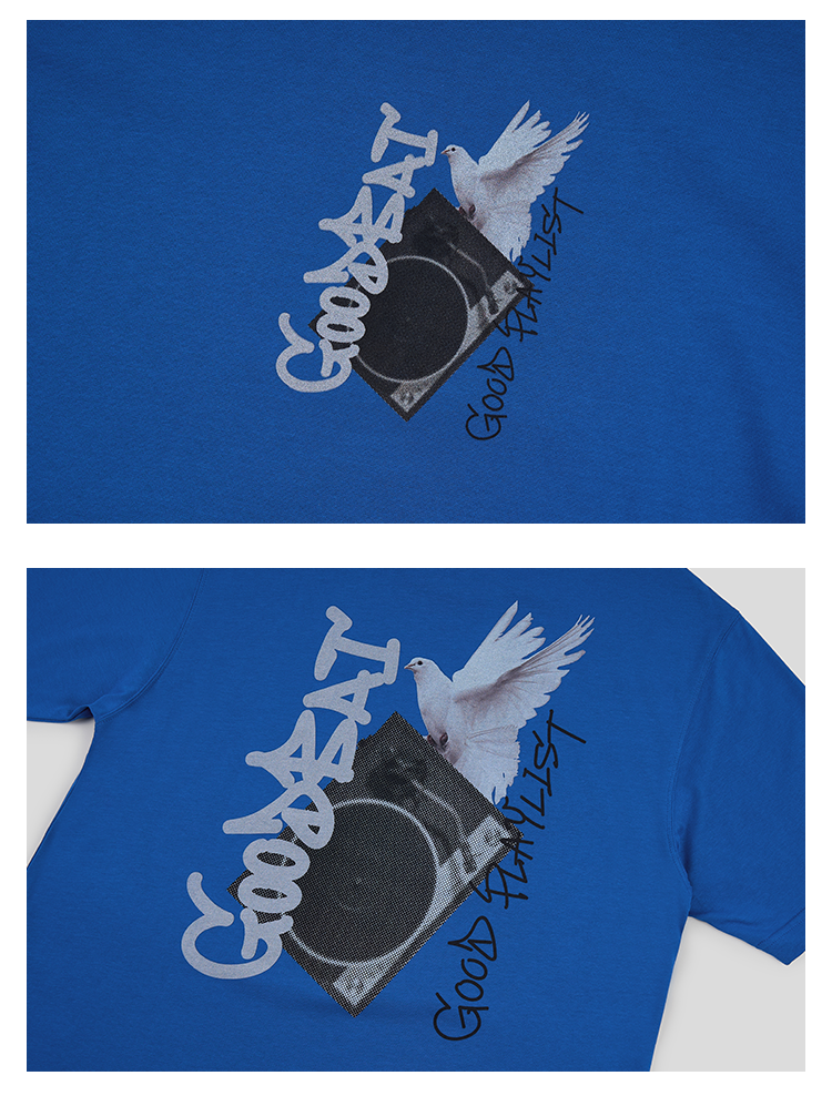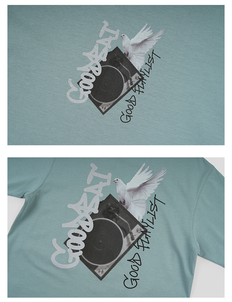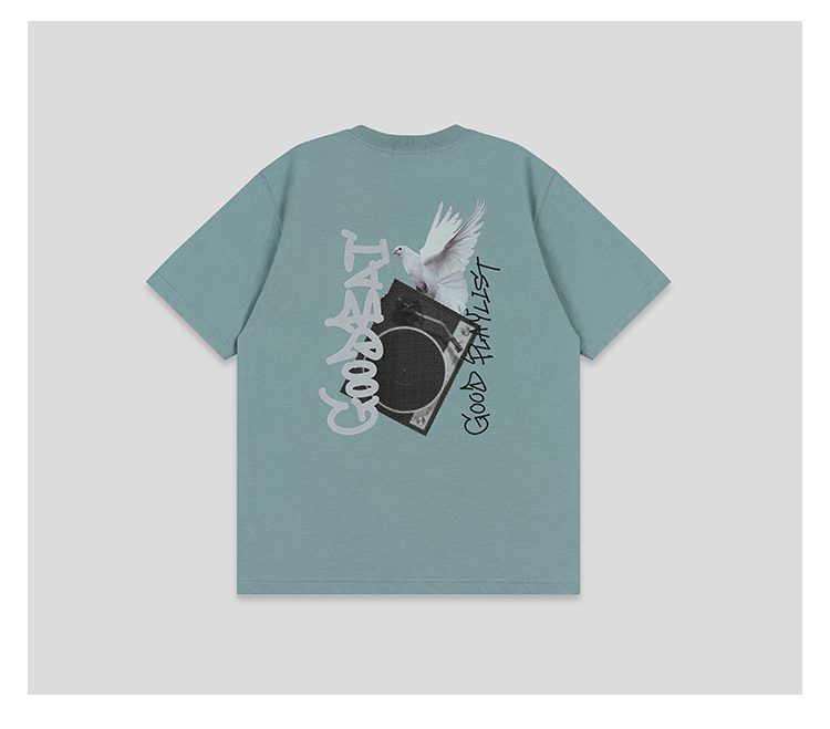 GOODBAI 唱片机logo印花圆领oversize短袖T恤
