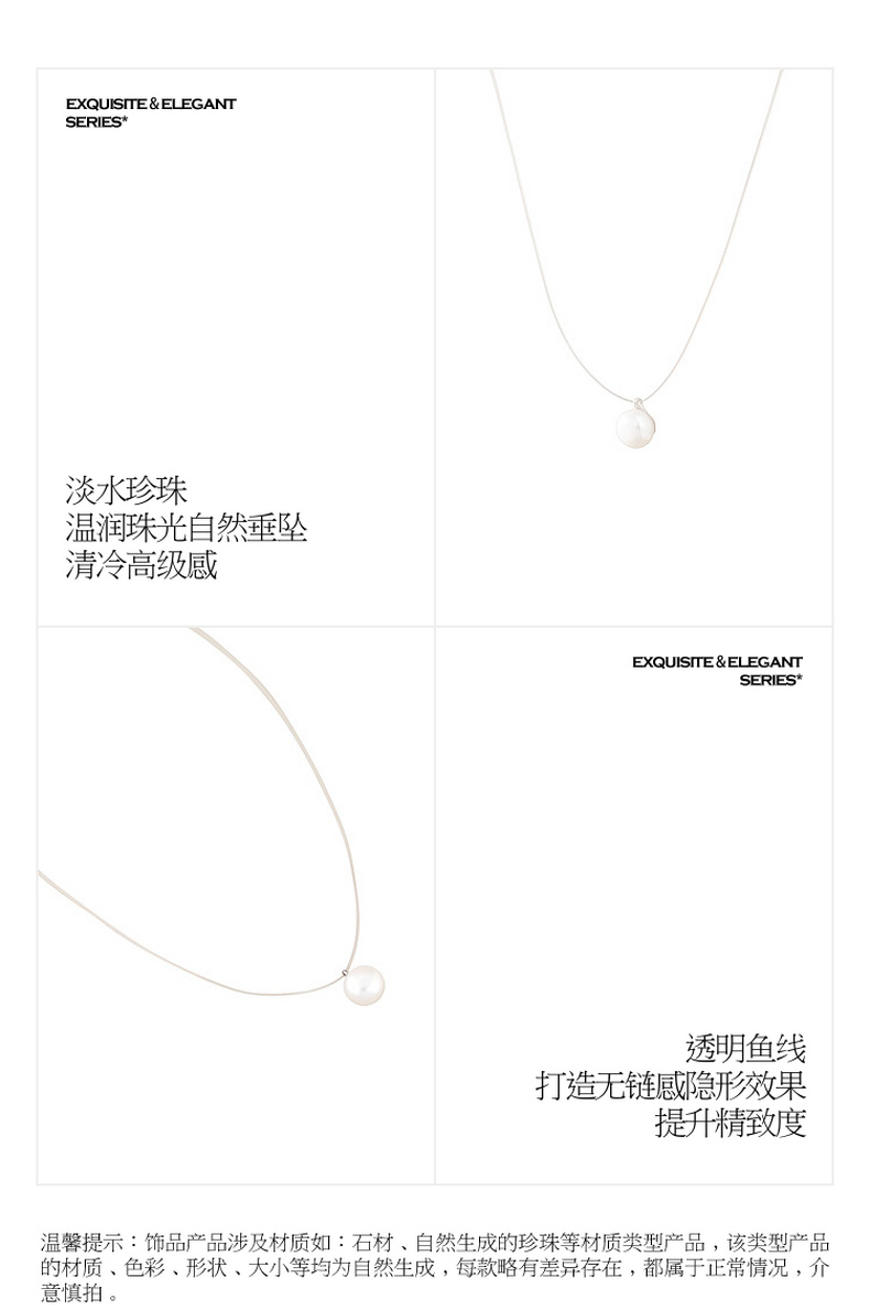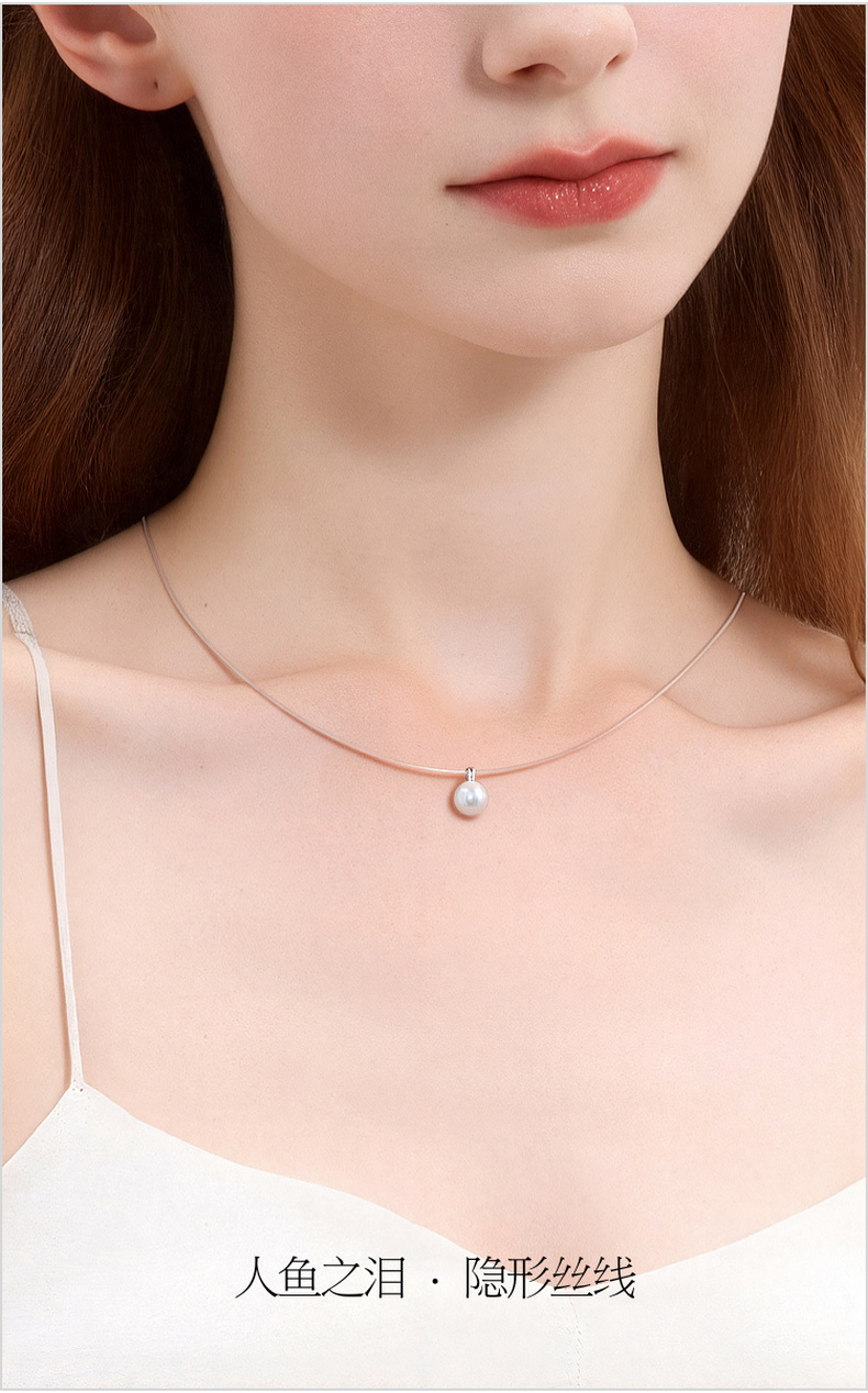 三彩2026新款极简轻奢风单颗淡水珍珠项链无链感透明鱼线通勤约会